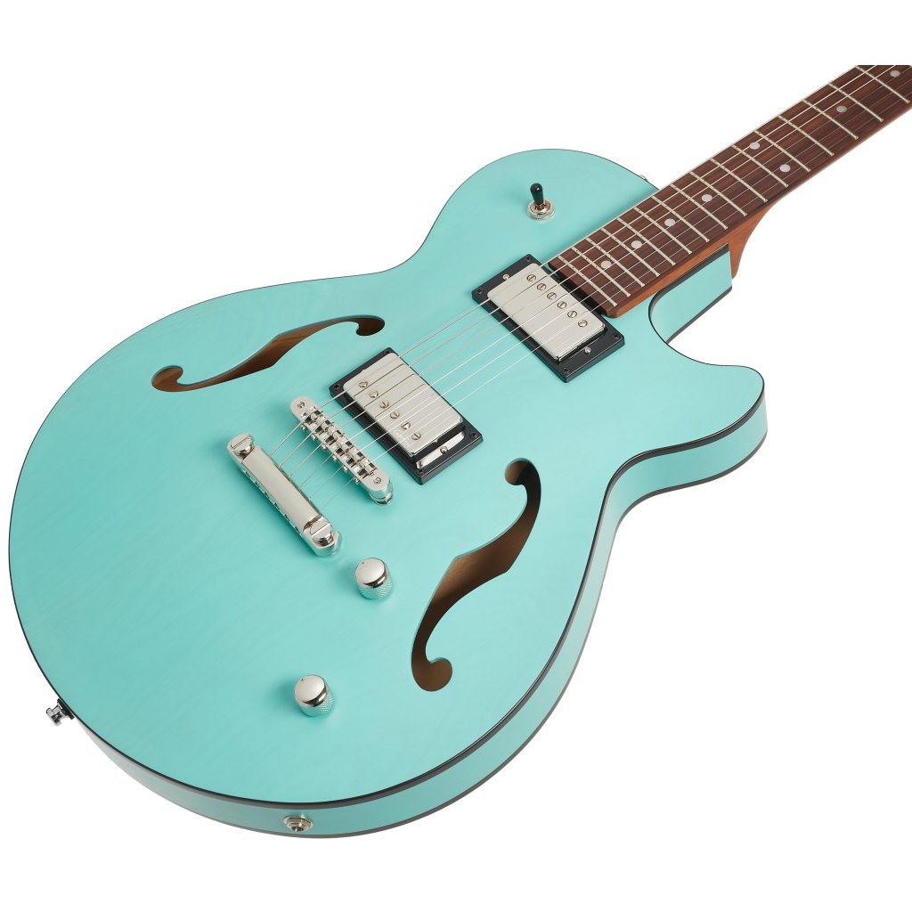 Montreal Premiere HT Laguna Blue je gitara s polodutým telom, ktorú možno použiť v rôznych hudobných štýloch - od jazzu a blues až po rock. Telo gitary je skonštruované s prednou doskou, zadnou doskou a lubmi z laminovanej kanadskej masívnej čerešne a stredovým blokom z cédrového dreva. K mahagónovému krku je prilepený palisandrový hmatník osadený dvadsiatimi dvoma pražcami. Polohové bodky uľahčujú orientáciu na jeho povrchu.