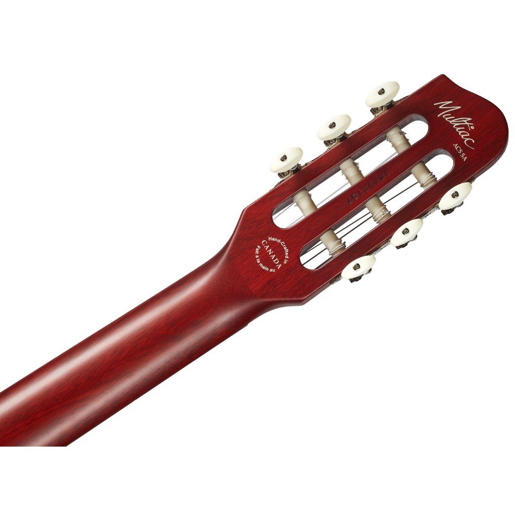 Základ zvuku modelu Multiac ACS-SA Nylon Natural SG tvorí komorované telo zo strieborného javora a vrchná doska z masívneho cédra. K priskrutkovanému mahagónovému krku je prilepený hmatník z moderného kompozitného materiálu richlite osadený dvadsiatimi dvoma pražcami. Vďaka komorovej konštrukcii tela je gitara úplne odolná voči spätnej väzbe, takže ani hlasné koncerty s kapelou nepredstavujú žiadny problém.