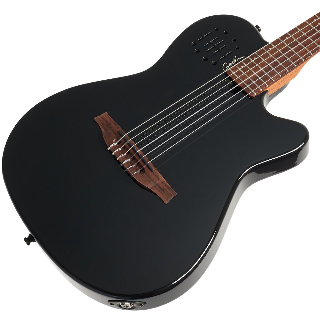 Nástroj je osazen elektronikou Custom Godin Dual Source, která nabízí dvojí snímání zvuku pomocí podkobylkového piezo snímače a dvou senzorů v těle nástroje. Charakter zvuku lze upravovat pomocí ovladače hlasitosti, třípásmového ekvalizéru a ovladače poměru mic/sensor snímání.