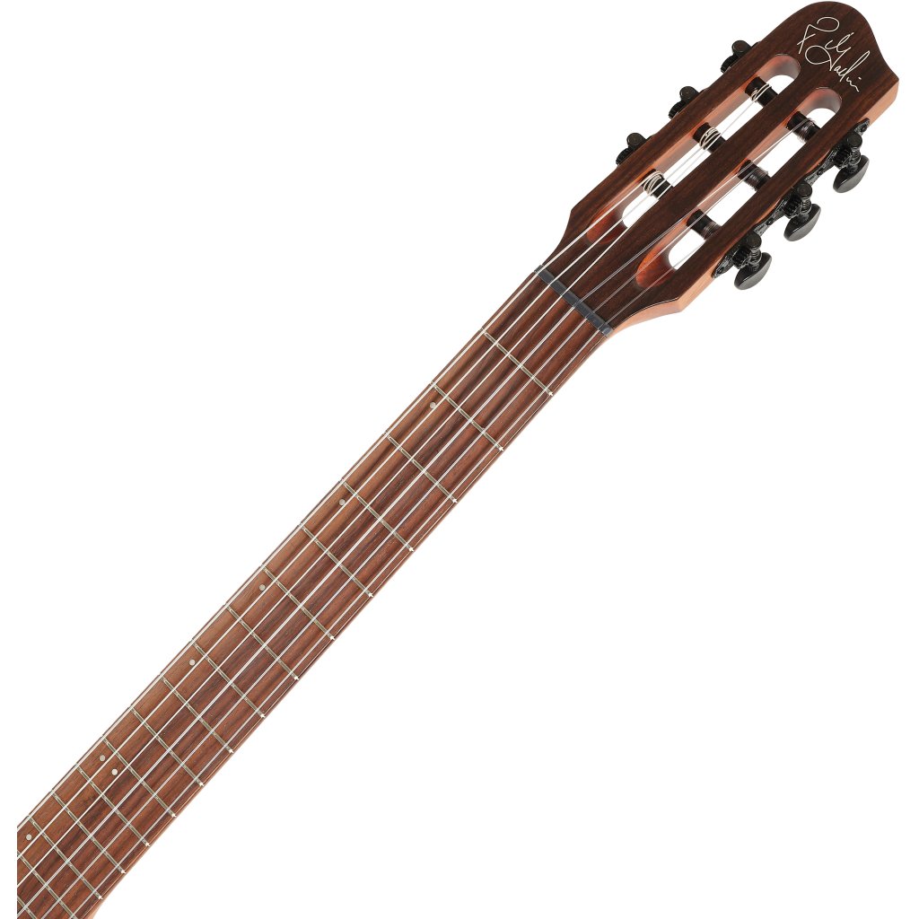 Základ zvuku klasické elektroakustické kytary Multiac Mundial Onyx Black with Bag tvoří lubové tělo ze stříbrolistého javoru a top z masivu cedru. K přišroubovanému krku ze španělského cedru je přilepen palisandrový hmatník osazený dvaadvaceti pražci. Nylonové struny kytary jsou uchyceny přes nultý pražec z materiálu Graphtech v klasických otevřených ladících mechanikách s převodovým poměrem 16:1 a palisandrové kobylce. Pěkné zpracování podtrhuje finiš Onyx Black..