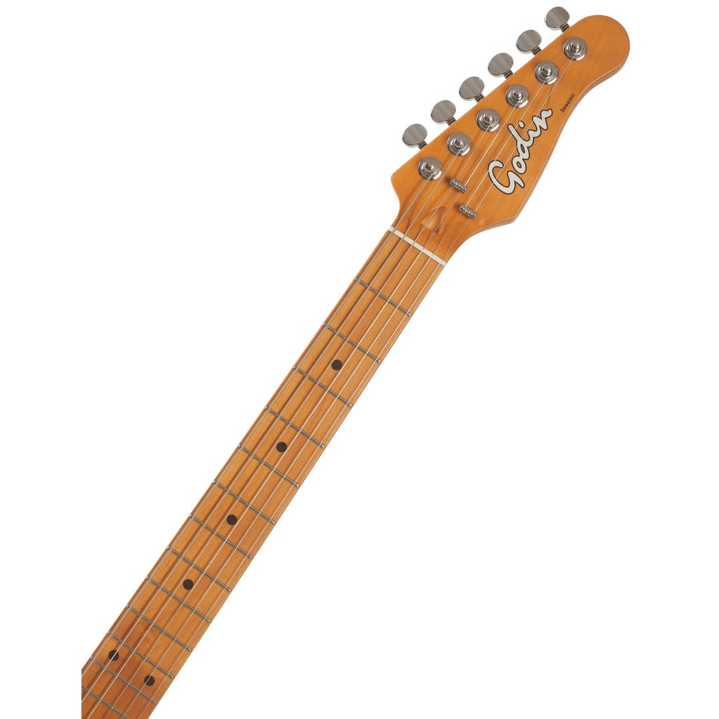 Godin Session HT Aztek Red MN je elektrická gitara klasického tvaru ST, ktorá poteší kvalitným spracovaním a modernejšími prvkami s dôrazom na pohodlie pri hre (napríklad plochejší 12-palcový rádius).