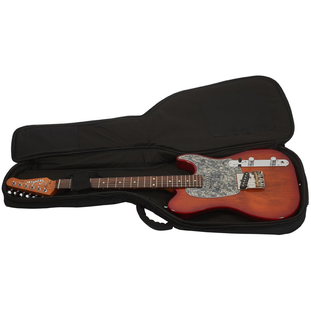 Rad Stadium kanadskej značky Godin predstavuje elektrické gitary v single-cut T tvare, ktoré potešia kvalitným spracovaním a súčasnejšími prvkami s akcentom na herný komfort. Telo modelu Stadium PRO Sunset Burst RN je zhotovené z kanadskej lipy. K javorovému krku je prilepený palisandrový hmatník osadený dvadsaťdva pražcami veľkosti Medium. Orientáciu po ploche hmatníka uľahčujú pozičné bodky. Prierazný zvuk kobylkového snímača Lollar T Special dopĺňa vrelý plný tón s dynamickými a transparentnými výškami krkového snímača TV Jones Starwood. Pri zapojení oboch snímačov vám gitara ponúkne pekný šťavnatý zvuk bez typického brumu single-coilov. Stabilné ladenie zaručuje uchytenie strún vo firemných mechanikách s prevodovým pomerom 18:1 a cez typickú T štýle „popolníkovú“ kobylku s mosadznými sedlami cez telo. Gitara je dodávaná v obale (gig bag).