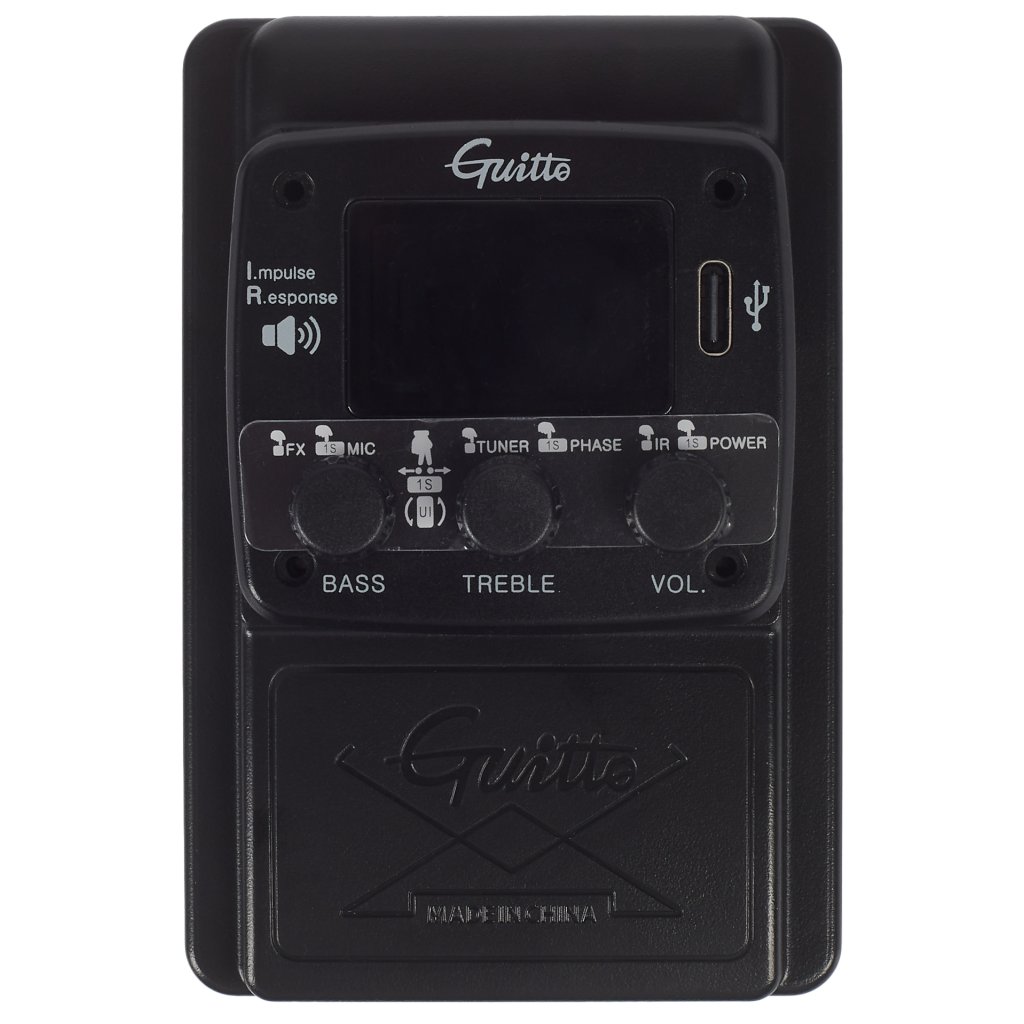 Guitto GGP-04 IR Resonance Pickup ponúka päť vstavaných IR profilov vrátane typov korpusov, ako sú Dreadnought a Auditorium, možnosť nahradiť vstavané IR vlastnými (WAV, 24-bit/44,1 kHz, dĺžka vzorky 1024 pts) a efekty delay a reverb vďaka vibračnej jednotke.