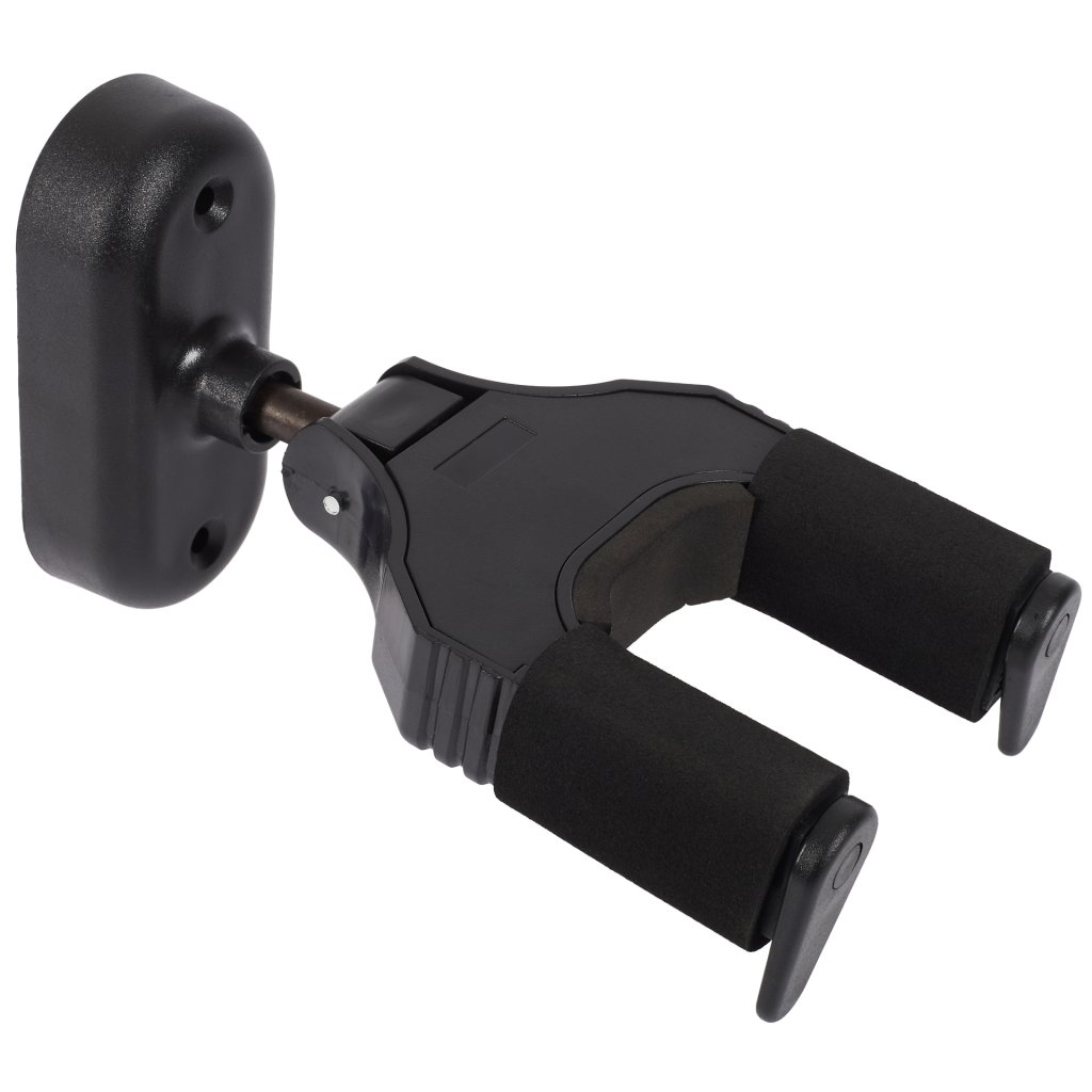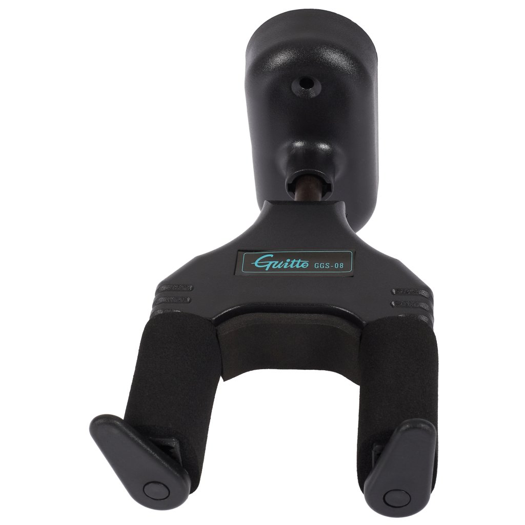 Univerzálny gitarový stojan so samosvorným systémom, ktorý zabraňuje náhodnému vykĺznutiu vášho drahého nástroja. Stojan je vyrobený z kombinácie ocele a ABS plastu, vďaka čomu je nielen veľmi robustný, ale aj príjemne ľahký. Vidlica stojana je schopná pojať väčšinu tvarov gitarových hláv, ale samozrejme aj iné nástroje, ako sú basgitary, banja, ukulele a ďalšie. Samozrejmosťou je aj ochranná EVA pena v miestach, kde sa stojan dostáva do kontaktu s nástrojom, aby sa zabránilo poškriabaniu laku.
