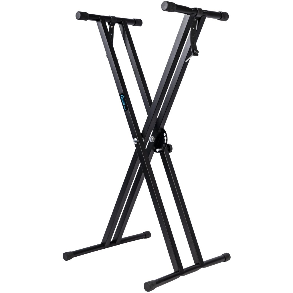 Pevný oceľový stojan na klávesnicu s jednoduchým sedemstupňovým systémom nastavenia výšky. Pogumované konce konštrukcie zaisťujú celkovú stabilitu a ochranu proti poškriabaniu. Stojan je vhodný pre všetky typy klávesníc. Na bezpečné pripevnenie prístroja k stojanu sú súčasťou balenia popruhy so skrutkou.
