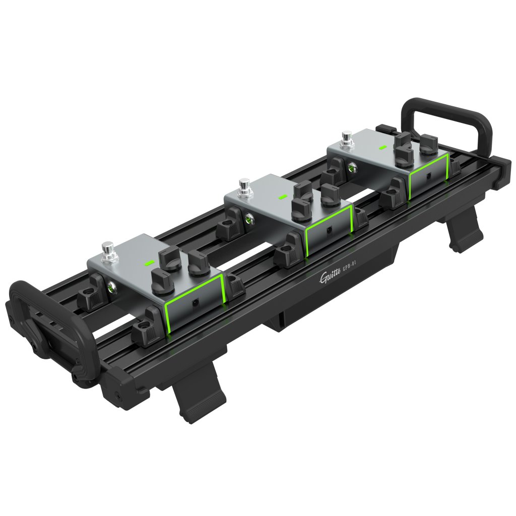 GPB-01 je hliníkový pedalboard od čínskej značky Guitto, na ktorý môžete umiestniť tri až štyri pedále štandardnej veľkosti s efektmi Boss. Pomocou výklopných nožičiek môžete pedalboard zdvihnúť a vytvoriť pod ním miesto na montáž napr. napájacieho zdroja. Pedalboard sa dodáva s obalom a montážnym hardvérom vrátane držiakov na pedále. V prípade straty je možné samostatne zakúpiť náhradné držiaky pedálov (HN223036).