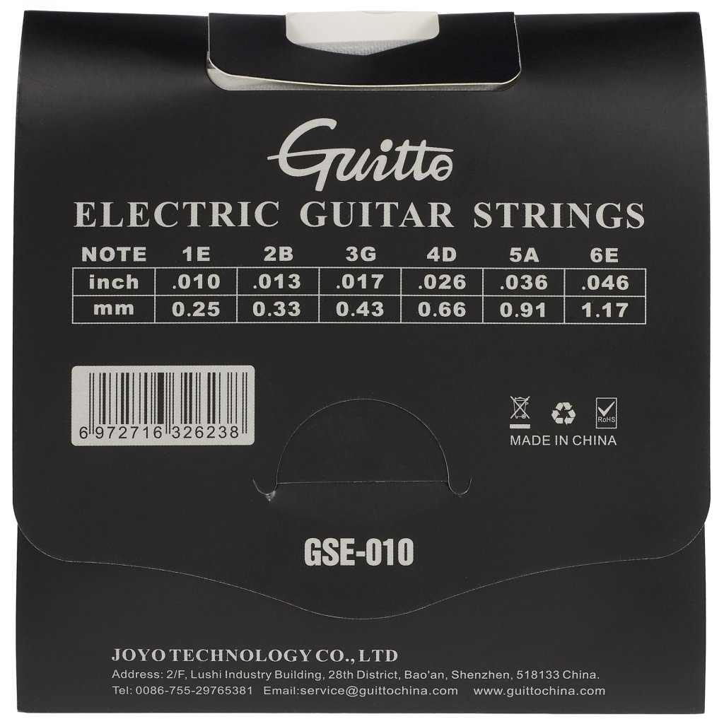 Tieto kovové struny Guitto sú vhodné pre šesťstrunové elektrické gitary. Zmes ocele a uhlíka im dodáva úderný, čistý tón, ktorý vynikne pri hre v kapele. Vďaka šesťhrannému jadru sú odolné voči praskaniu a špeciálny poťah zaručuje dlhú životnosť a ochranu proti korózii. Tvrdosť 10-46 predstavuje zlatú strednú cestu poskytujúcu pevnosť pre stabilné ladenie, ale zároveň dostatočnú poddajnosť pre ohyby a sóla.