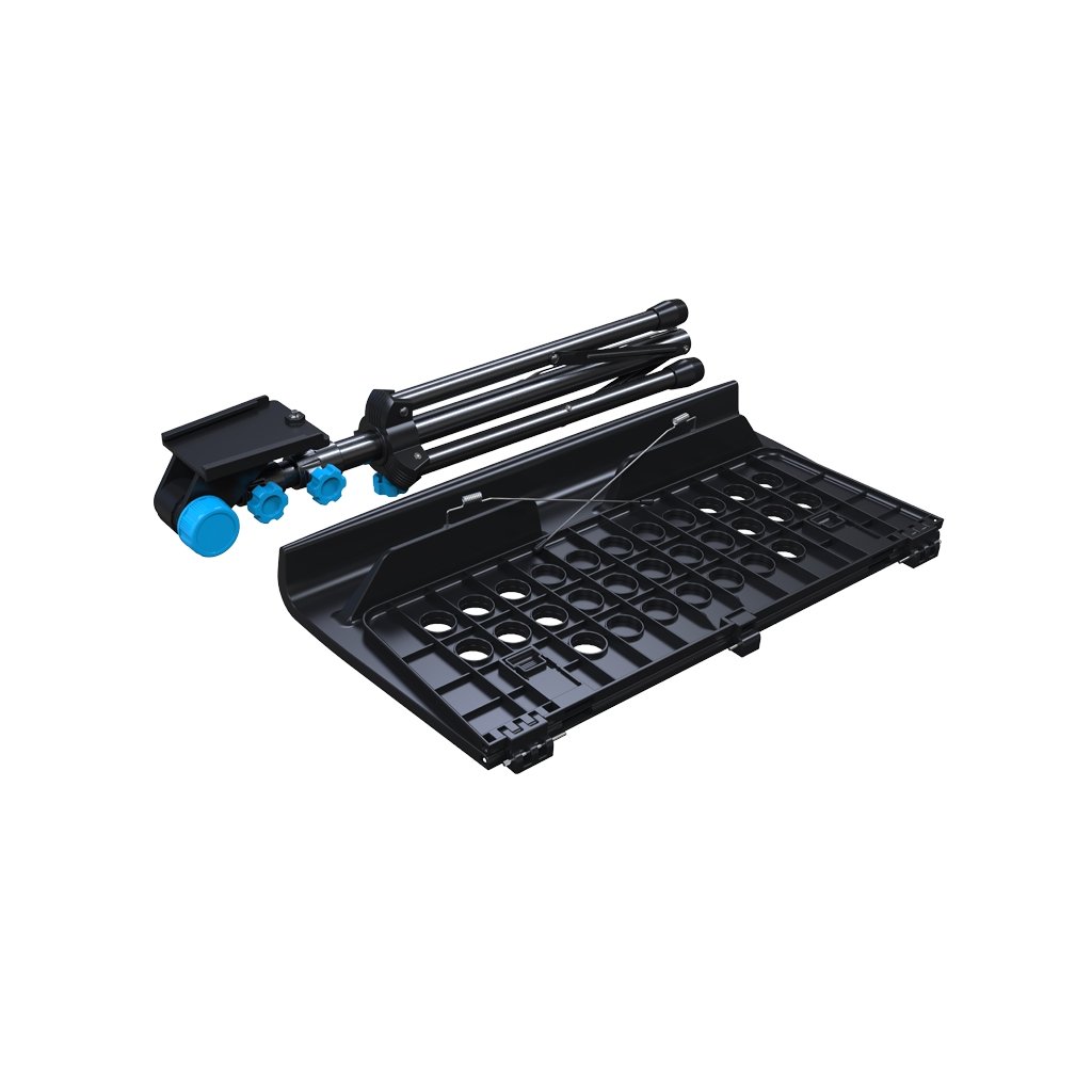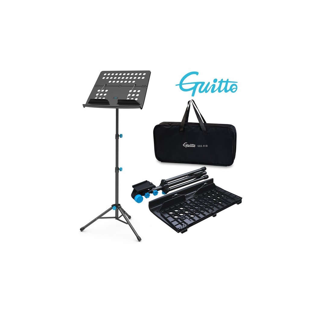 Univerzálny notový stojan je vhodný na hranie v sede alebo v stoji. Možno ho použiť aj na domáce cvičenie, živé vystúpenie alebo v štúdiu. Stojan sa skladá z robustnej oceľovej trojnožky, ku ktorej je pripevnený ergonomický notový držiak z odolného polyamidu. Skladacia konštrukcia umožňuje tri výškové nastavenia, ako aj jednoduchú a pohodlnú prepravu. Flexibilný stojan na noty s rozmermi 47 x 39 cm ponúka niekoľko možností na upevnenie notového materiálu, tabletov alebo iných mobilných zariadení.