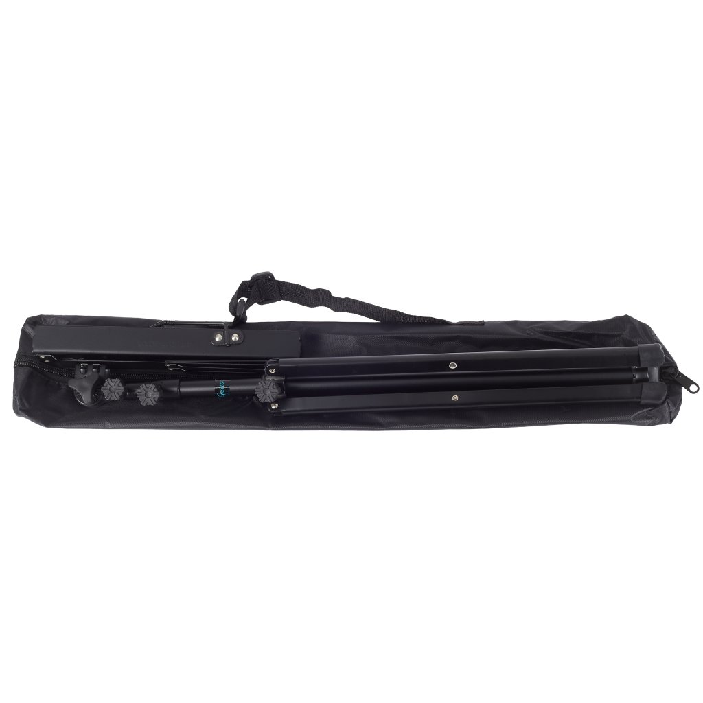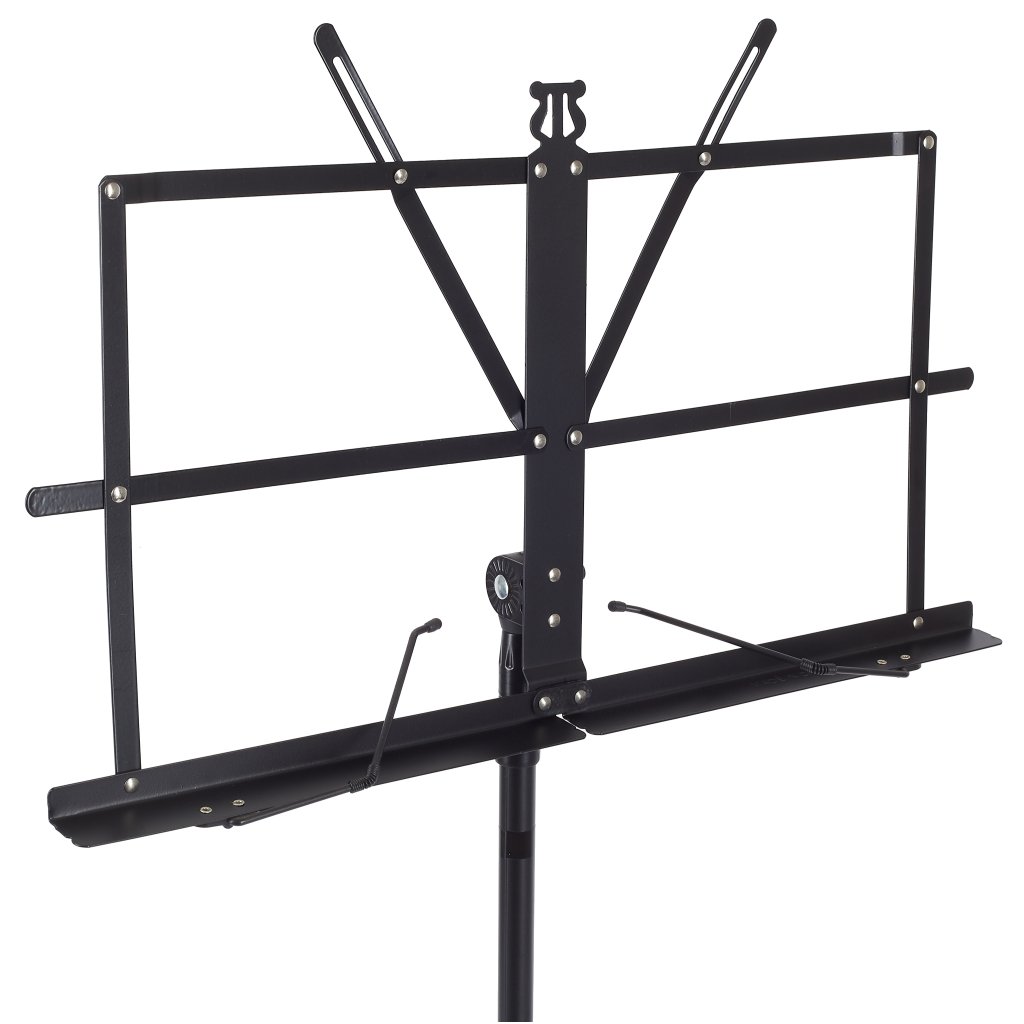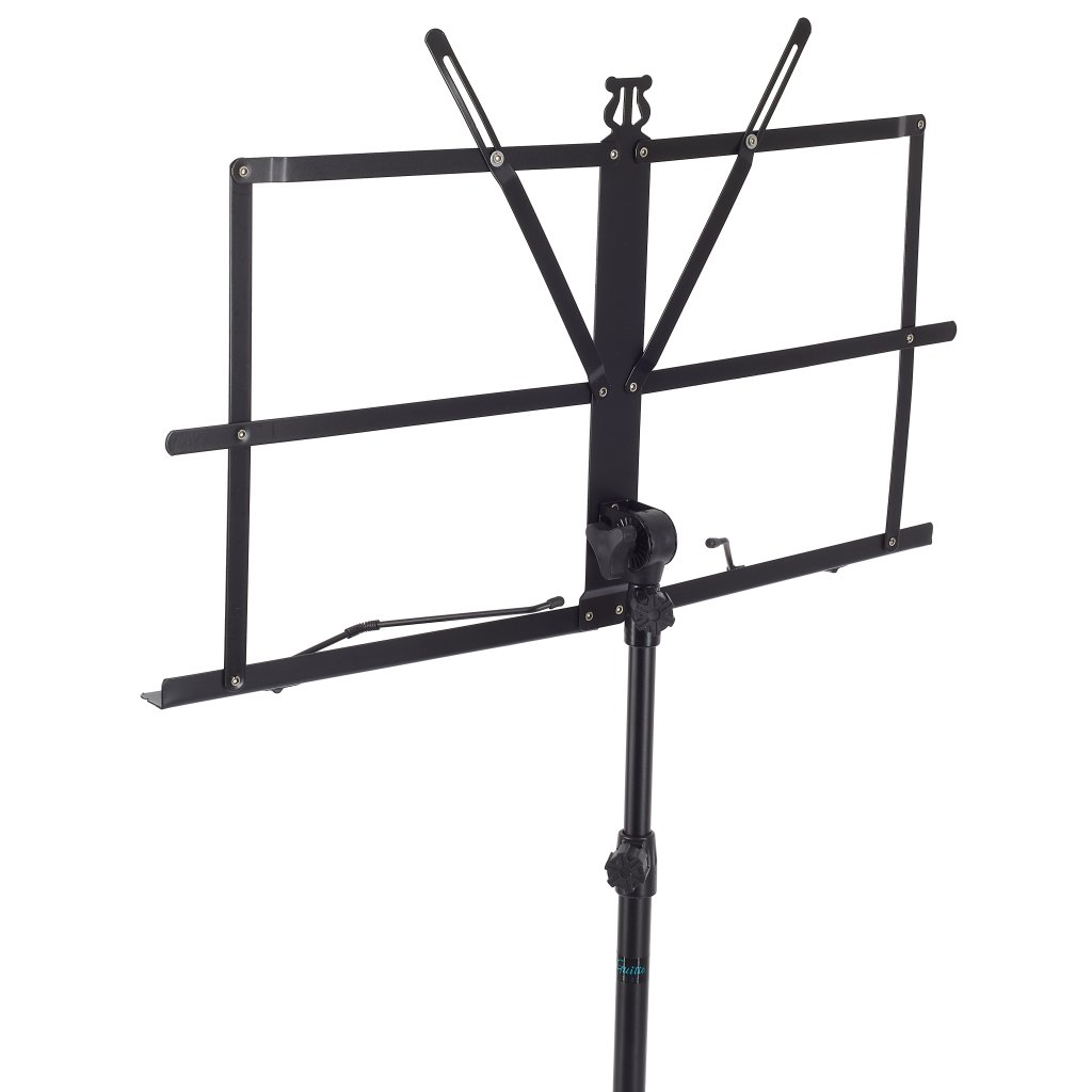 Tento stojan na noty poskytuje široký rozsah nastavenia výšky a sklonu, takže ho môžete používať v stoji aj v sede. Vďaka nízkej hmotnosti a minimálnym rozmerom v zloženom stave je ideálnym spoločníkom na cesty. Napriek tomu si zachováva svoju robustnosť a stabilitu s nosnosťou až 2,5 kg. Samozrejmosťou sú aj protišmykové úpravy na statíve, kovové držiaky stránok a ergonomické uťahovacie gombíky.