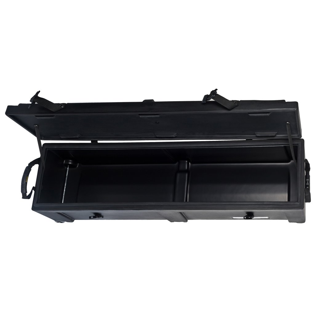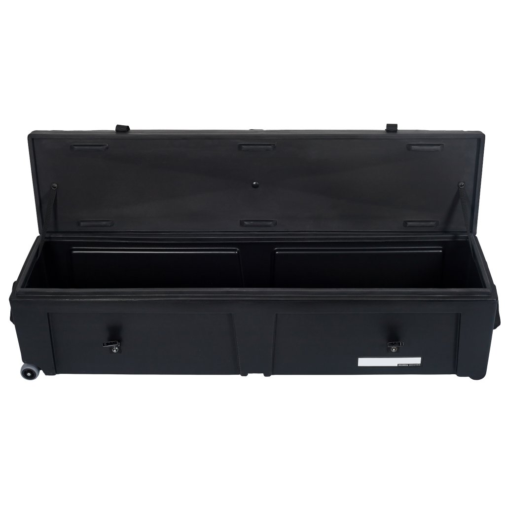Všetko sa začína použitím extrémne pevného plastu, ktorého odolnosť voči mechanickému poškodeniu zvyšuje inteligentná konštrukcia, ktorá zaručuje aj vodotesnosť. Každý kufor Hardcase je vybavený spoľahlivými kolieskami, pohodlnými rukoväťami a držadlami a pevnými upínacími popruhmi. Vnútorná podšívka z tlmiacej peny zaisťuje bezpečné uchytenie nástroja. Puzdro sa úplne bezpečne uzamkne a veko sa dá nastaviť tak, aby sa prístroj zaistil na mieste.