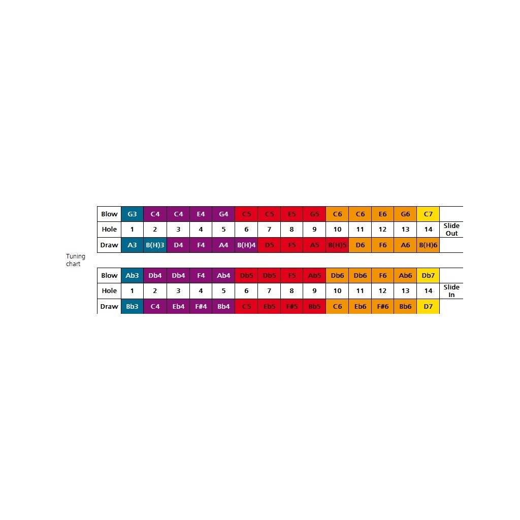 Chrometta 14 je vhodná pre pokročilejších hráčov. Jeho telo je vyrobené z odolného kompozitného materiálu ABS. Harmonika má tiež kryty z nehrdzavejúcej ocele, päťdesiatšesť mosadzných hlavičiek, mosadzné plátky s hrúbkou 1,05 mm, širšie otvory kanálikov pre ľahšie hranie a rozsah tri a pol oktávy.