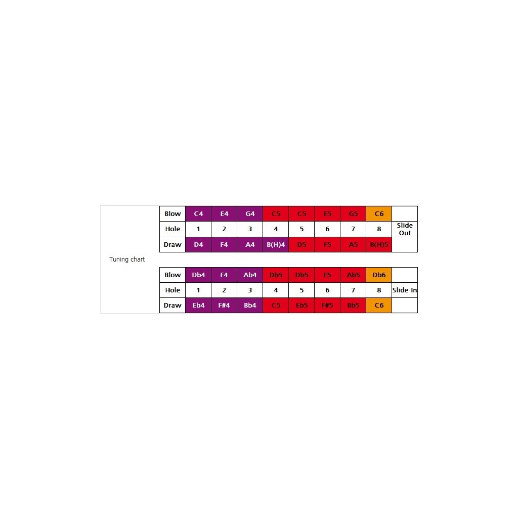 Kompaktný model Chrometta 8 je ideálny na zoznámenie sa s chromatickými harmonikami, ale poteší aj skúsených alebo profesionálnych hráčov. Jeho telo je vyrobené z odolného kompozitného materiálu ABS. Harmonika má tiež kryty z nehrdzavejúcej ocele, tridsaťdva mosadzných hlavičiek, mosadzné plátky s hrúbkou 1,05 mm, širšie otvory kanálikov pre ľahšie hranie a dvojoktávový rozsah.
