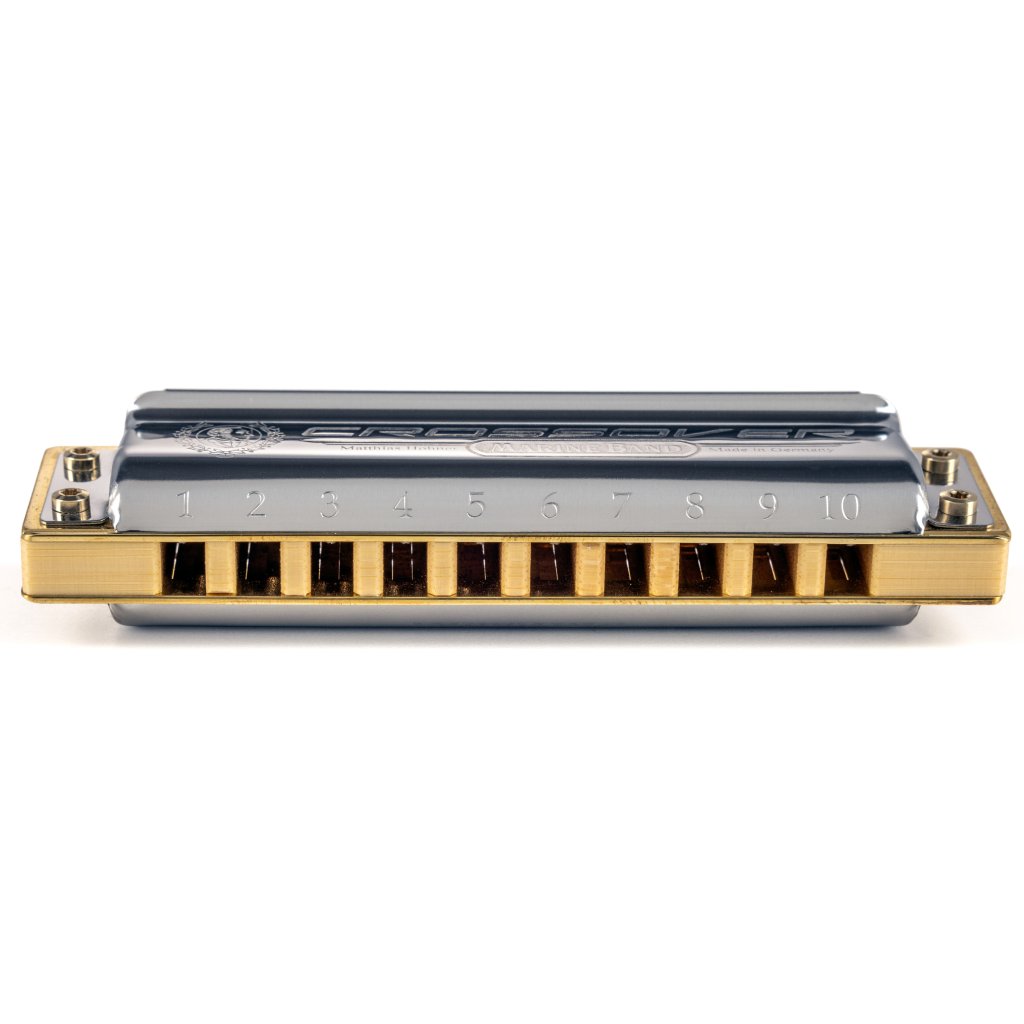 Model Marine Band Crossover je moderně pojatá foukací harmonika vycházející vstříc požadavkům současných profesionálních hráčů blues a všech příbuzných nebo navazujících stylů (jazz, rock, soul, funk). Nástroj je ideální k hraní melodií po jednotlivých tónech i k akordovým doprovodům – ať už akusticky nebo s mikrofonním ozvučením. Jeho patentovaný, třikrát lakovaný korpus z laminovaného bambusu je zcela voděvzdorný a vzduchotěsný, což zaručuje jeho stálost, dlouhou životnost a jasný, znělý tón. Harmonika obsahuje mosazné hláskové desky o tloušťce 0,9 mm a je kryta ozvučnicí z nerezové oceli s bočními otvory a otevřenou zadní stranou. Zvukově pokrývá celkem tři oktávy.