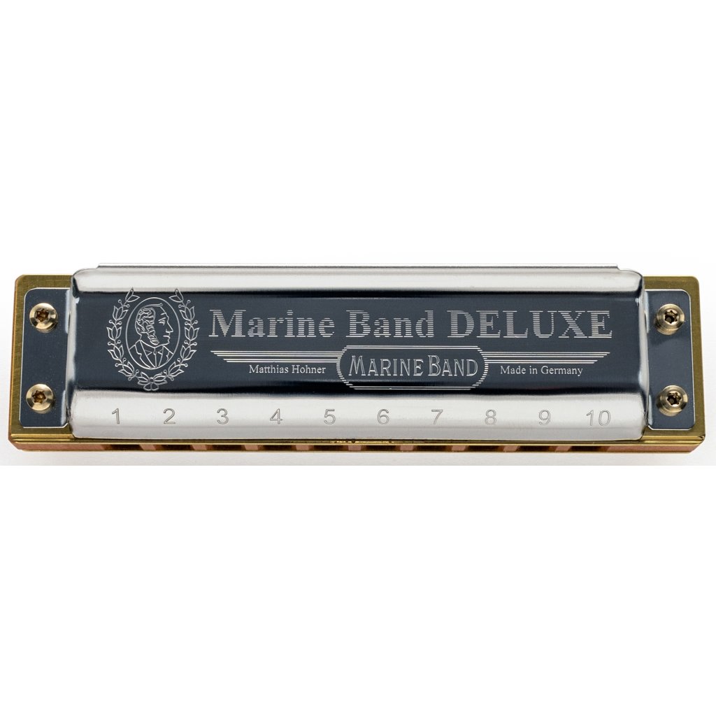 Harmoniky Marine Band Deluxe dokážu expresívne zachytiť vnútorné ľudské pocity, ktoré sú vlastné blues. Zároveň reaguje na potreby dnešných hudobníkov konštrukčnými zmenami, ktoré zaručujú ešte väčšiu hlasitosť a rýchlejšiu odozvu harmoniky. Jej telo je vyrobené z trojito lakovaného hruškového dreva, ktoré chráni pred absorpciou vlhkosti a rozpínaním. Harmonika obsahuje mosadzné rezonančné dosky s hrúbkou 0,9 mm a je pokrytá rezonančnou doskou z nehrdzavejúcej ocele s bočnými otvormi a otvorenou zadnou stranou. Zvuk pokrýva celkovo tri oktávy.