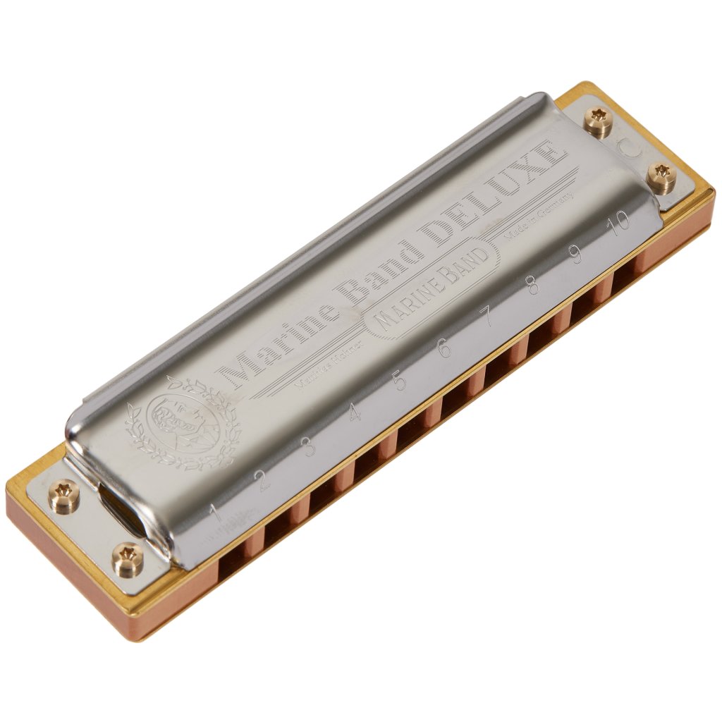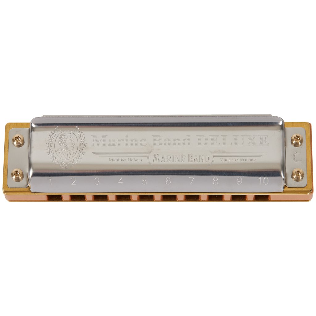 Zvuk harmoniky Marine Band je pevně spojen se zvukem blues od jeho amerických prvopočátků až do dnešních dní. Dokáže s intenzitou expresivně vystihnout niterné lidské pocity, neodmyslitelně spojené s tímto hudebním i životním stylem. Harmonika Marine Band Deluxe si přenáší tuto schopnost a zároveň otevírá dveře do 21. století vstříc potřebám současných muzikantů. Designové změny zaručují ještě větší hlasitost a rychlejší odezvu harmoniky. Její korpus je zhotoven z trojitě lakovaného dřeva hrušně, tj. je tak chráněné proti absorpci vlhkosti a rozpínání. Harmonika dále disponuje zpevněnými kryty z nerezové oceli s bočními otvory a otevřenou zadní stranou, zaoblenými hranami pro větší herní pohodlí, dvaceti mosaznými hlásky, mosaznými plátky o tloušťce 0,9 mm a rozsahem tří oktáv. Součástí je též neoprenový obal se zipem, který chrání harmoniku před prachem a umožňuje odvádět vlhkost.