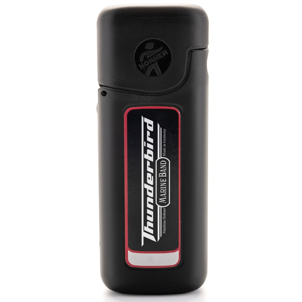 Model Marine Band Thunderbird je naladený o oktávu nižšie ako štandardné fúkacie harmoniky. Dokáže tak vyprodukovať skutočne mohutný, bohatý zvuk so zvýrazneným basovým registrom. Jej patentované, trikrát lakované laminované bambusové telo je úplne vodotesné a vzduchotesné, čo zaručuje stabilitu, dlhú životnosť a jasný, rezonujúci tón. Harmonika je vybavená mosadznými rezonančnými plátkami s hrúbkou 0,9 mm a je pokrytá rezonančnou doskou z nehrdzavejúcej ocele s bočnými otvormi a otvorenou zadnou stranou. Spodný asymetrický kryt zabraňuje chrasteniu plátkov počas hry. Zvukovo harmonika pokrýva celkom tri oktávy.