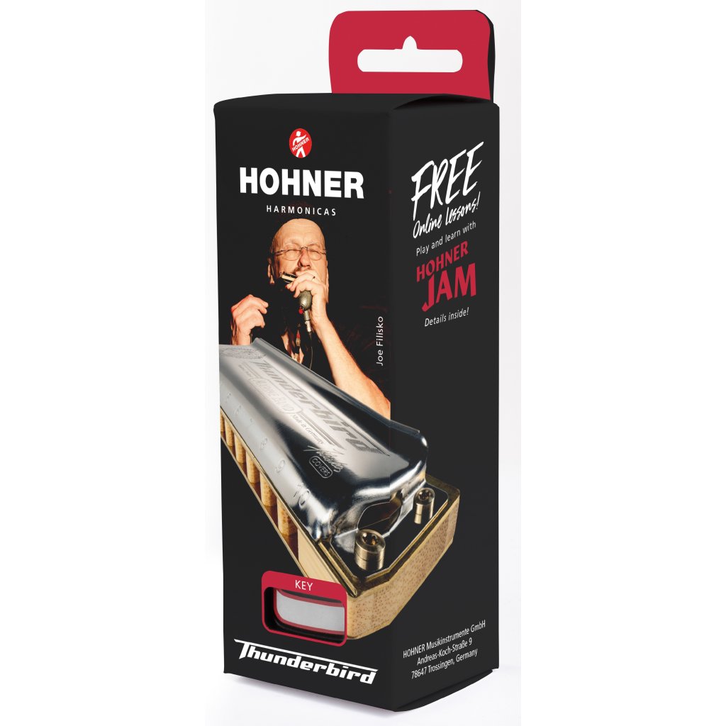 Model Marine Band Thunderbird je laděný o oktávu níže než standardní foukací harmoniky. Je tak schopen produkovat opravdu silný, bohatý zvuk s akcentovaným basovým rejstříkem. Jeho patentovaný, třikrát lakovaný korpus z laminovaného bambusu je zcela voděvzdorný a vzduchotěsný, což zaručuje jeho stálost, dlouhou životnost a jasný, znělý tón. Harmonika obsahuje mosazné hláskové desky o tloušťce 0,9 mm a je kryta ozvučnicí z nerezové oceli s bočními otvory a otevřenou zadní stranou. Spodní asymetrický kryt zabraňuje drnčení plátků při hře. Zvukově harmonika pokrývá celkem tři oktávy.