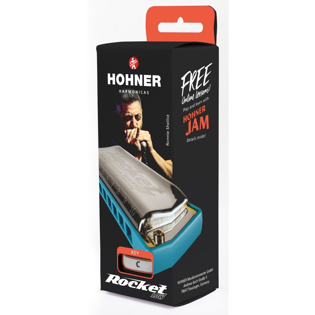 Pokud hledáte harmoniku se silným zvukem, která se prosadí i v rámci větších hudebních skupin a neztratí se pod salvami bicích a kytar, zkuste sáhnout po modelu Rocket Low. Všechny foukací harmoniky s označením Rocket jsou uzpůsobeny k dosažení co nejhlasitějšího zvuku, model Rocket Low je však laděný o oktávu níže než běžné harmoniky. Je tak schopen produkovat opravdu silný, bohatý zvuk s akcentovaným basovým rejstříkem. Zároveň díky zaobleným rohům a hranám korpusu přesně padne do ruky a poskytuje dokonalé pohodlí při hře. Modrý korpus harmoniky je vyroben z odolného materiálu ABS a disponuje dvěma mosaznými hláskovými deskami o tloušťce 0,9 mm, ozvučnice je z nerezové oceli. Harmonika používá Richter ladění a její rozsah dosahuje tří oktáv.