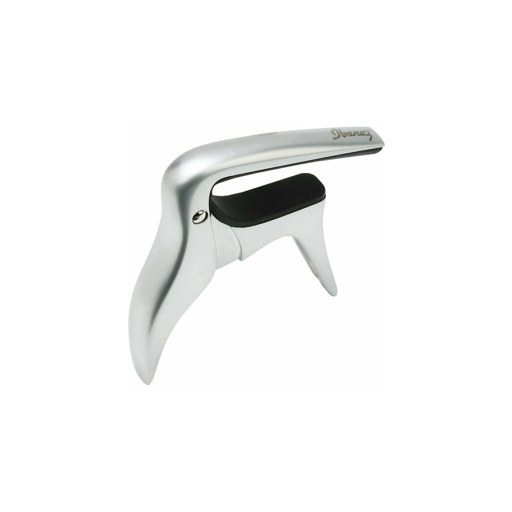 Kovový kapodaster vhodný pre ukulele. Ovládanie jednou rukou. Hmotnosť 41g. Strieborné farebné prevedenie.