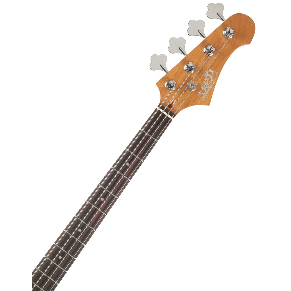 Cenovo dostupná štvorstrunová elektrická basgitara v JB designe. Telo z "pečeného" topoľa zdobí štýlový finiš v zlatej farbe. Ku krku z tepelne upraveného dreva kanadského javora je prilepený palisandrový hmatník. Krk vystužuje dvojcestná výstuha, plochu hmatníka rozdeľuje dvadsať pražcov a pozičné bodky. Basgitara je osadená dvoma JB štýle snímačmi. Charakter zvuku upravíte pomocou potenciometrov hlasitosti a tónovej clony. Struny sú uchytené v chrómovaných ladiacich mechanikách vo vintage štýle a kobylke so štyrmi sadľami. Štýlové spracovanie podčiarkuje pickguard z imitácie korytnačiny a firemné logo na hlavici. Pomerne nová značka Jet Guitars ponúka cenovo dostupné elektrické gitary a basgitary v tradičných dizajnoch, farbách a finišiach.