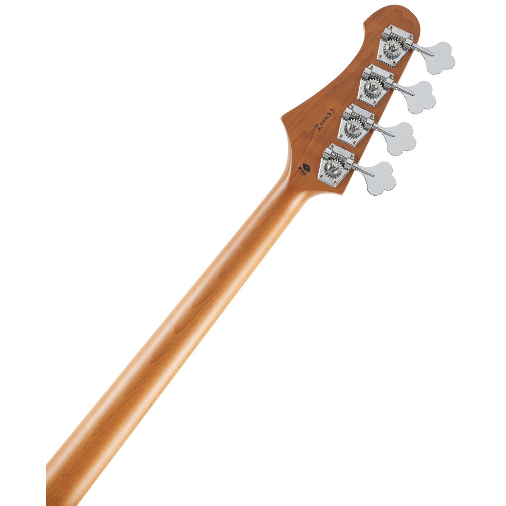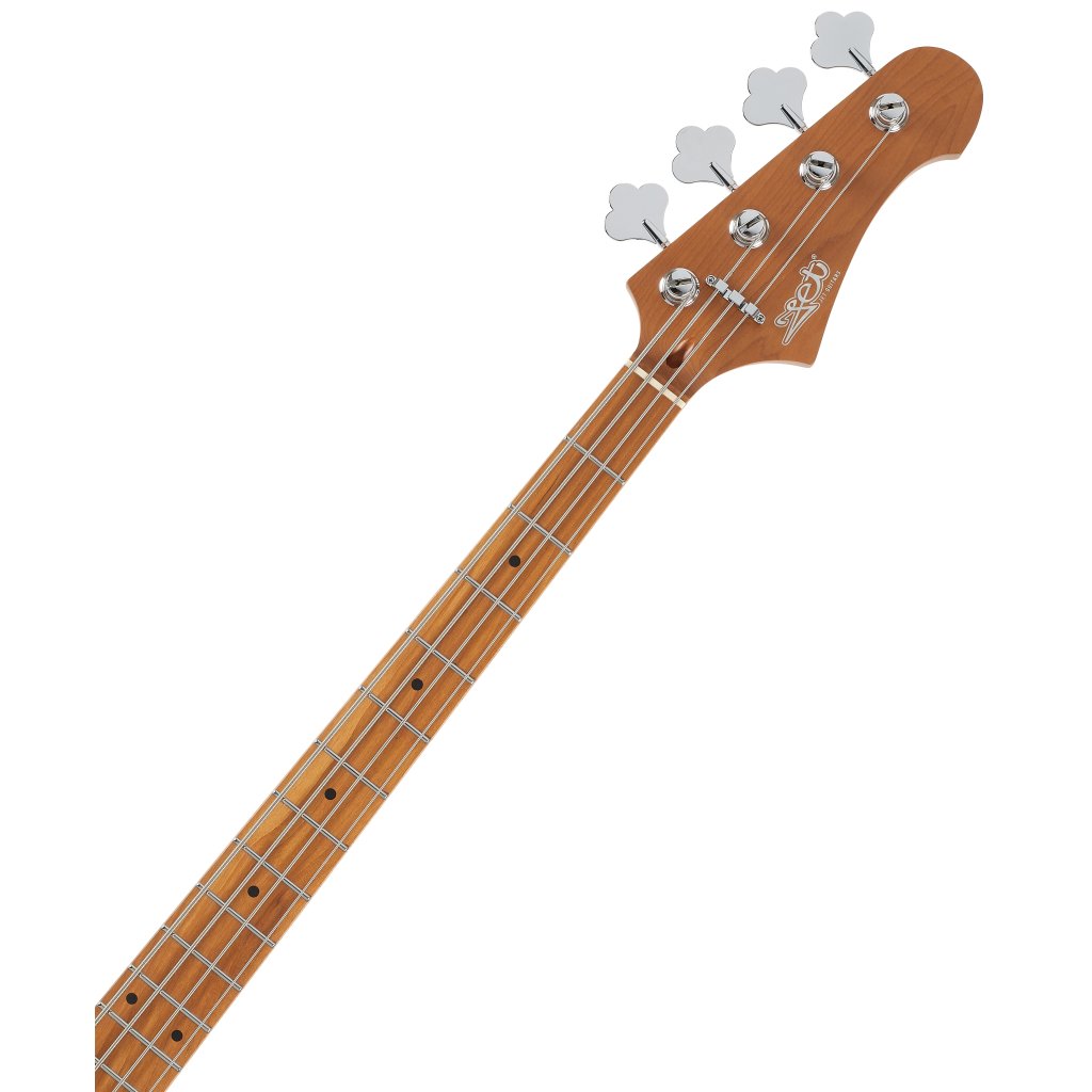 Baskytara je osazena dvěma JB style snímači. Charakter zvuku upravíte pomocí ovladačů hlasitosti snímačů a potenciometru tónové clony. Struny jsou uchyceny v chromovaných ladicích mechanikách ve vintage stylu a kobylce se čtyřmi sedly. Stylové zpracování podtrhuje pickguard z imitace želvoviny a firemní logo na hlavici.