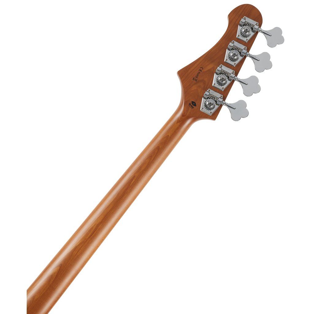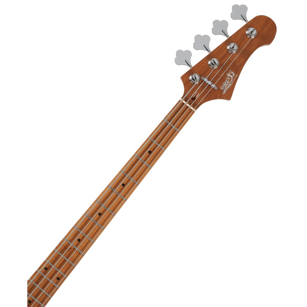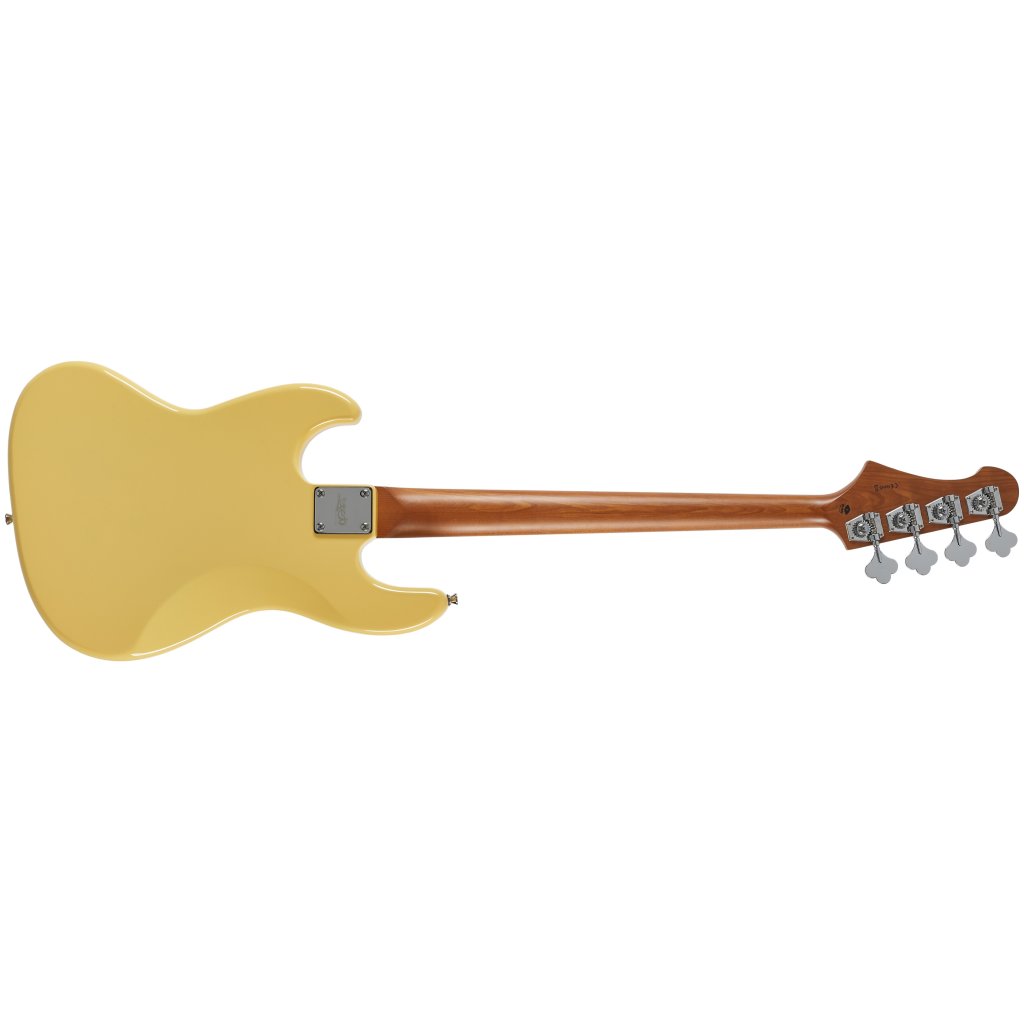 Baskytara je osazena dvěma JB style snímači. Charakter zvuku upravíte pomocí ovladačů hlasitosti snímačů a potenciometru tónové clony. Struny jsou uchyceny v chromovaných ladicích mechanikách ve vintage stylu a kobylce se čtyřmi sedly. Stylové zpracování podtrhuje pickguard z imitace želvoviny a firemní logo na hlavici.