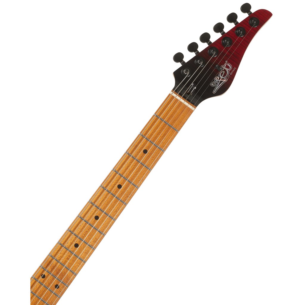 Elektrická gitara JET JS-1000 Vulcano je modernejší model ST/Super ST. Mahagónové telo nástroja zdobí fládrovaná javorová dýha a pôsobivá povrchová úprava Flamed Transparent Red. Skrutkovaný krk a hmatník z kanadského javora boli pred montážou tepelne upravené, vďaka čomu je drevo stabilnejšie a zároveň získava vzhľad/atmosféru krku/hmatníka, na ktorý sa hrá už roky.