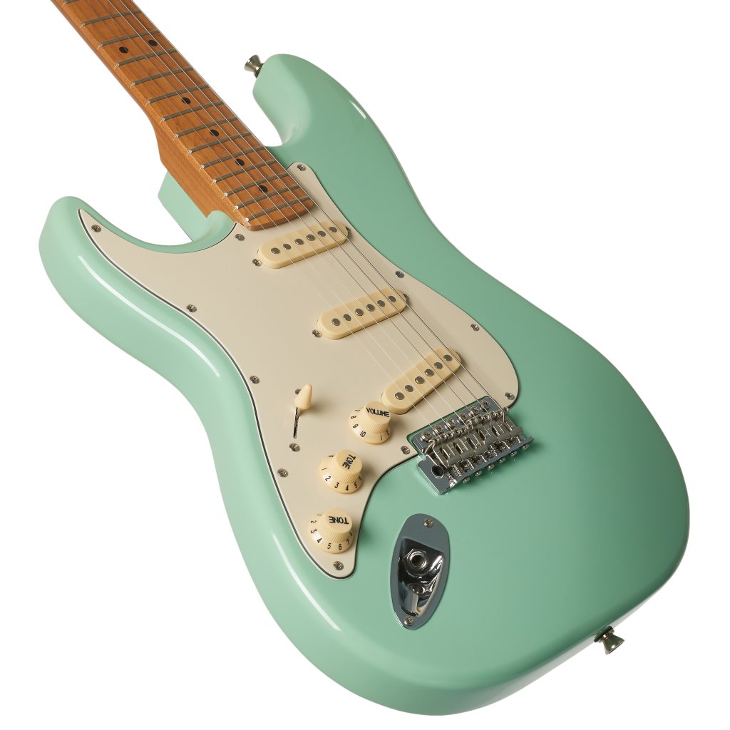 JET JS-300 SFG LH je elektrická gitara pre ľavákov, ktorá ponúka dizajn, remeselné spracovanie a tradičné vlastnosti modelov ST za dostupnú cenu. Lipové telo nástroja je pokryté lesklým lakom. Skrutkovaný krk a hmatník z kanadského javora boli pred montážou tepelne upravené, vďaka čomu je drevo stabilnejšie a zároveň má vzhľad/atmosféru krku/hmatníka, na ktorý sa hrá už roky.