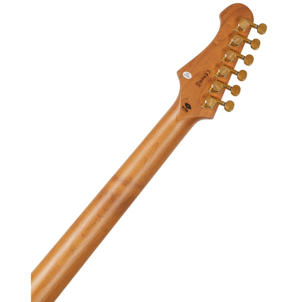 Tri single-coil snímače dodávajú gitare tradičný pocit a údernosť modelov ST. Charakter zvuku možno formovať pomocou potenciometra hlasitosti, dvoch tónových ovládačov a päťpolohového prepínača snímačov. Struny sú ukotvené prostredníctvom kosteného hmatníka v uzamykateľných ladiacich mechanikách a synchronizovaného tremola. Štýlový vzhľad gitary podčiarkuje čierny pickguard a zlatý hardware.