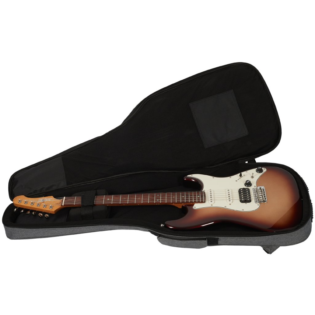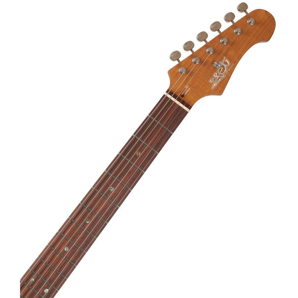Elektrická gitara Jet JS-40 Metallic Burst je súčasťou série Elite, ktorá ponúka to najlepšie od značky Jet. Olšové telo gitary zdobí povrchová úprava Metallic Burst. Javorový krk (quartersawn) je prilepený k hmatníku z indického palisandru osadenému dvadsiatimi dvoma pražcami. Tepelná úprava krku zvyšuje stabilitu dreva a zároveň mu dodáva vzhľad/atmosféru krku/hmatníka, na ktorý sa hrá už roky. Orientáciu na hmatníku uľahčujú perleťové pozičné bodky (Abalone).