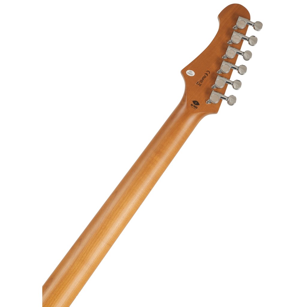 Plný, hutný zvuk humbuckera s keramickým magnetom je možné nastaviť pomocou potenciometra hlasitosti. Struny sú uchytené vo firemných chrómových ladiacich mechanikách a cez pevnú kobylku cez telo. Štýlový vzhľad gitary podčiarkuje pickguard s imitáciou perlete.