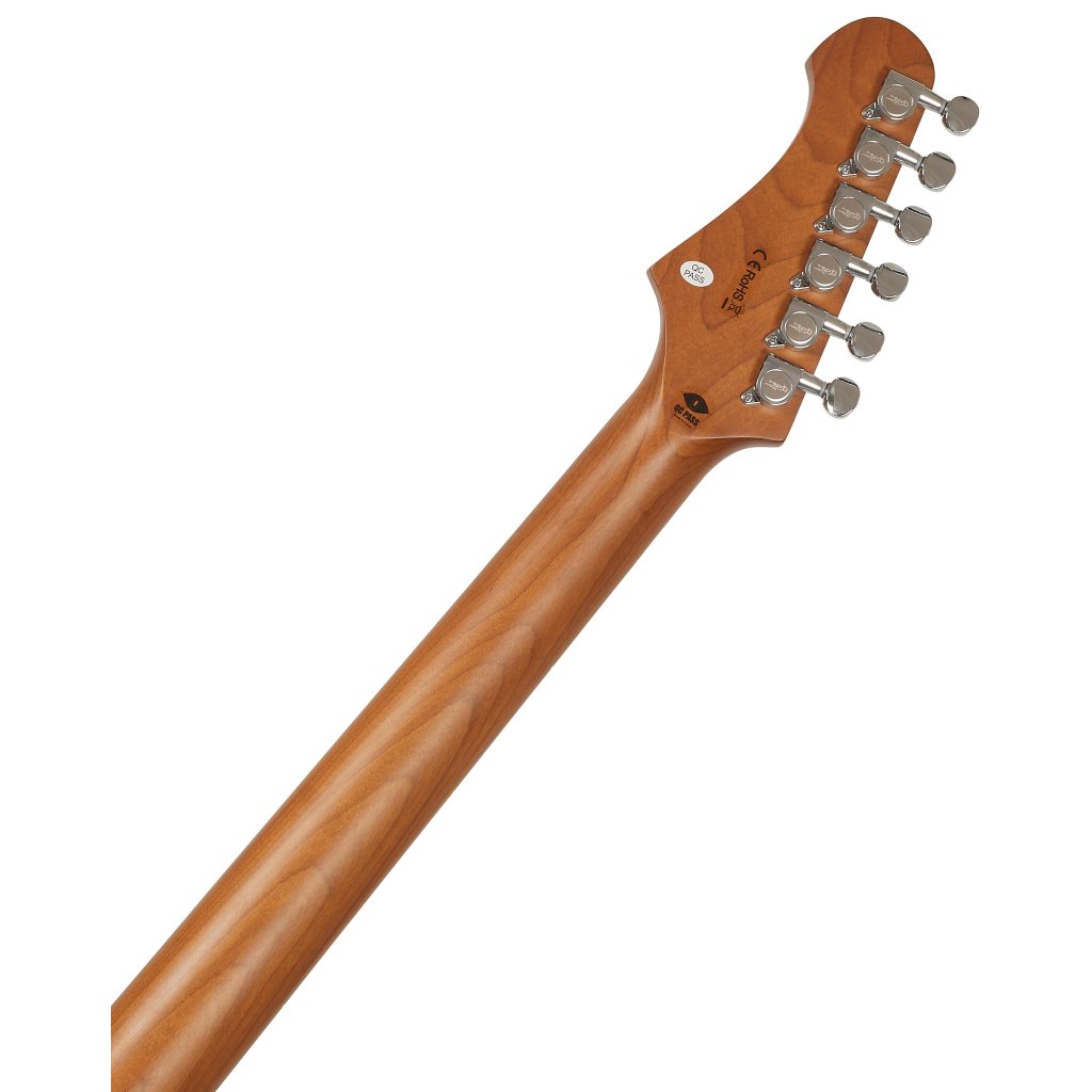 Plný, hutný zvuk humbuckera s keramickým magnetom je možné nastaviť pomocou potenciometra hlasitosti. Struny sú uchytené vo firemných chrómových ladiacich mechanikách a cez pevnú kobylku cez telo. Štýlový vzhľad gitary podčiarkuje pickguard s imitáciou perlete.