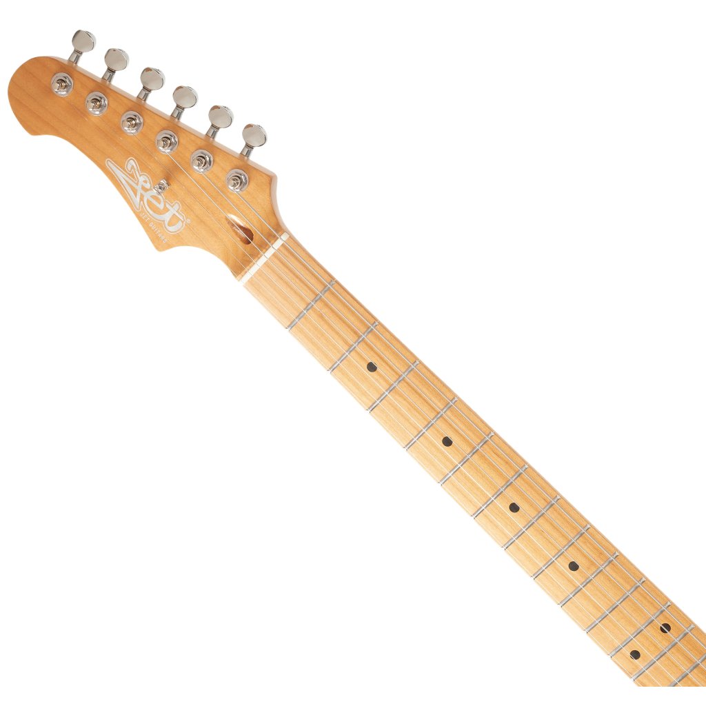 JET JS-400 SB LH je elektrická gitara pre ľavákov, ktorá ponúka dizajn, remeselné spracovanie a tradičné vlastnosti modelov ST za dostupnú cenu. Limetkové telo nástroja je pokryté lesklým lakom. Skrutkovaný krk a hmatník z kanadského javora boli pred montážou tepelne upravené, vďaka čomu je drevo stabilnejšie a zároveň má vzhľad a atmosféru krku/hmatníka, na ktorý sa hrá už roky.
