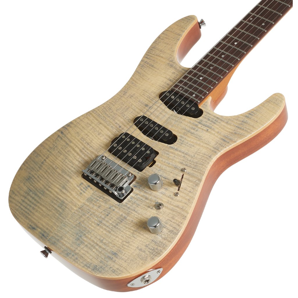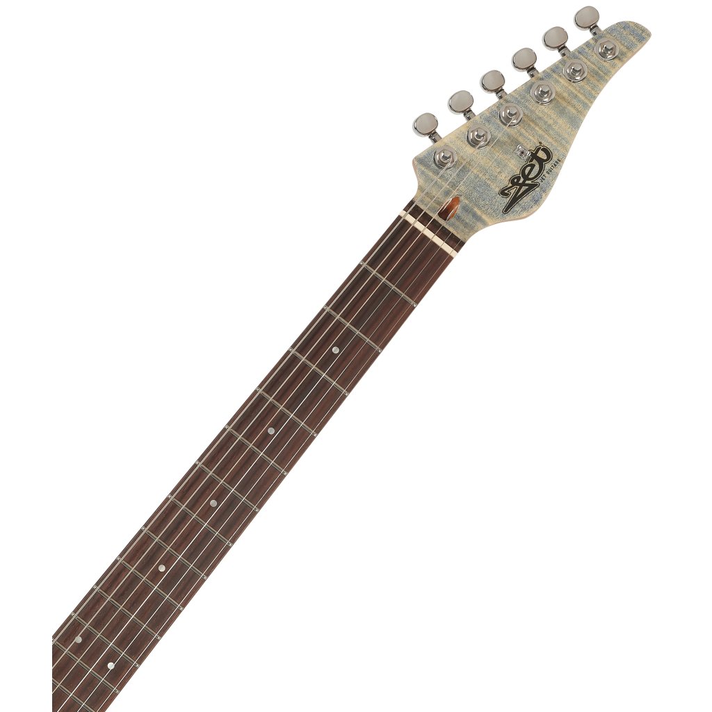 Elektrická gitara Jet JS-45 Indigo Gray je súčasťou série Elite, ktorá ponúka to najlepšie od značky Jet. Mahagónové telo zdobí vrchná dýha z fládrovaného javora a povrchová úprava Indigo Gray. Javorový krk (quartersawn) je prilepený k hmatníku z indického palisandru osadenému dvadsiatimi štyrmi pražcami. Tepelná úprava krku zvyšuje stabilitu dreva a zároveň mu dodáva vzhľad/atmosféru krku/hmatníka, na ktorý sa hrá už roky. Orientáciu na hmatníku uľahčujú perleťové pozičné bodky (White Shell).