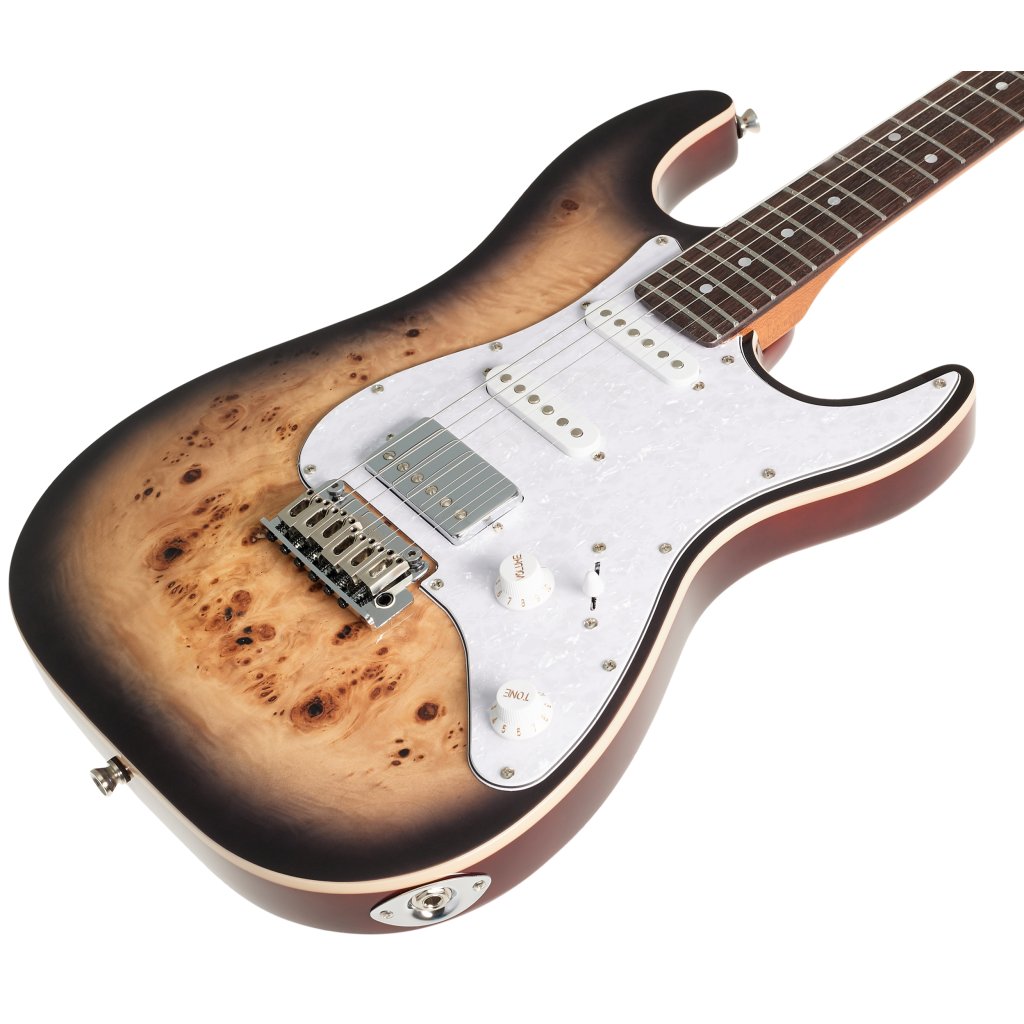 Kombinácia kobylkového humbuckera a dvoch single-coil snímačov s keramickými magnetmi poskytuje gitare pomerne širokú škálu zvukov vhodných pre rôzne hudobné štýly. Charakter zvuku možno formovať pomocou potenciometra hlasitosti, tónovej clony a päťpolohového prepínača snímačov. Struny sú ukotvené prostredníctvom kosteného pražca v pochrómovaných uzamykateľných ladiacich mechanikách a tremola Wilkinson. Štýlový vzhľad gitary podčiarkuje imitácia perleťového pickguardu.