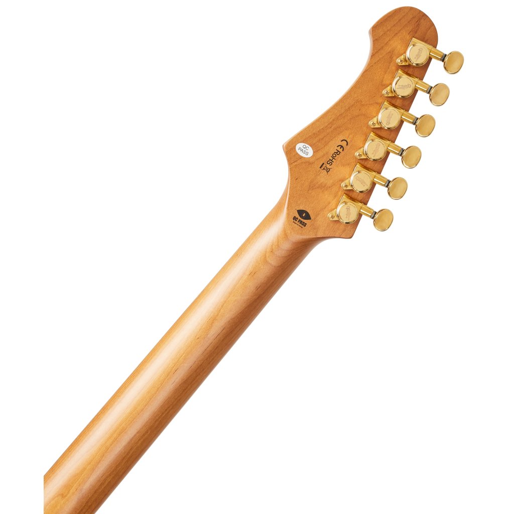 Kombinácia kobylkového humbuckera a dvoch single-coil snímačov s Alnico magnetmi poskytuje gitare širokú škálu zvukov, ktoré oceníte v mnohých hudobných žánroch. Charakter zvuku je možné formovať pomocou potenciometrov hlasitosti, tónovej clony a päťpolohového prepínača snímačov. Struny sú ukotvené prostredníctvom kosteného pražca v uzamykateľných ladiacich mechanikách a synchronizovaného tremola. Štýlový vzhľad gitary podčiarkuje svetlý pickguard a zlatý hardvér.