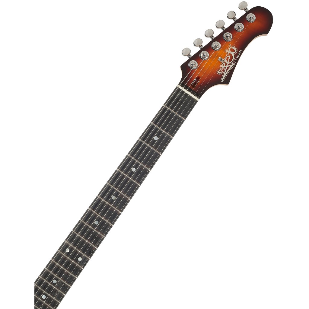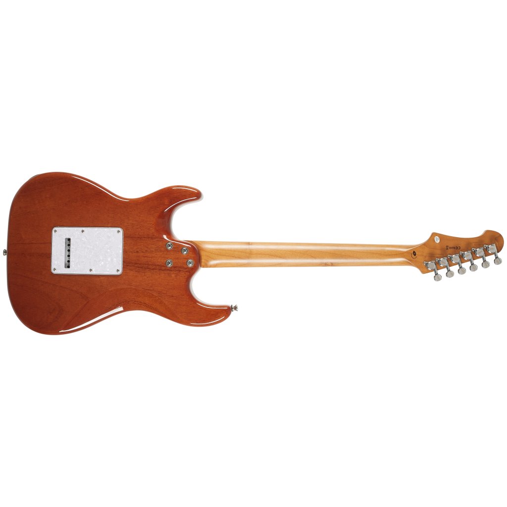 Elektrická gitara JET JS-600 BS je modernejší model ST/Super ST. Mahagónové telo nástroja zdobí dýha z fládrovaného javora so štruktúrou dreva zvýraznenou povrchovou úpravou sunburst. K priskrutkovanému krku z praženého kanadského javora je prilepený zmiešaný ebenový hmatník s dvadsiatimi dvoma pražcami.