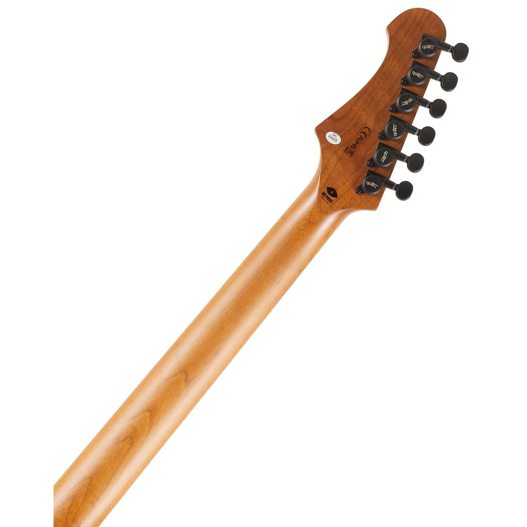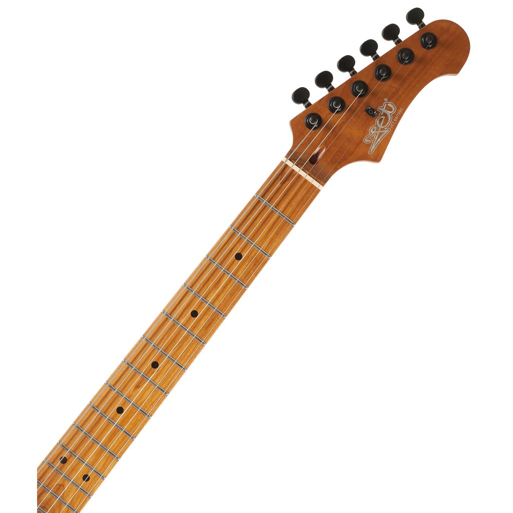 Elektrická gitara JET JS-600 TPP je modernejší model ST/Super ST. Mahagónové telo nástroja zdobí efektná dyha z dyhovaného javora. Na skrutkovaný krk z kanadského javora je prilepený javorový hmatník s dvadsiatimi dvoma pražcami. Vďaka tepelnej úprave krku a hmatníka je drevo stabilnejšie a zároveň gitara získava príjemne zlatistý vzhľad.