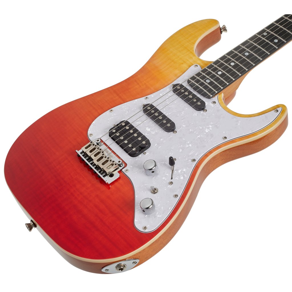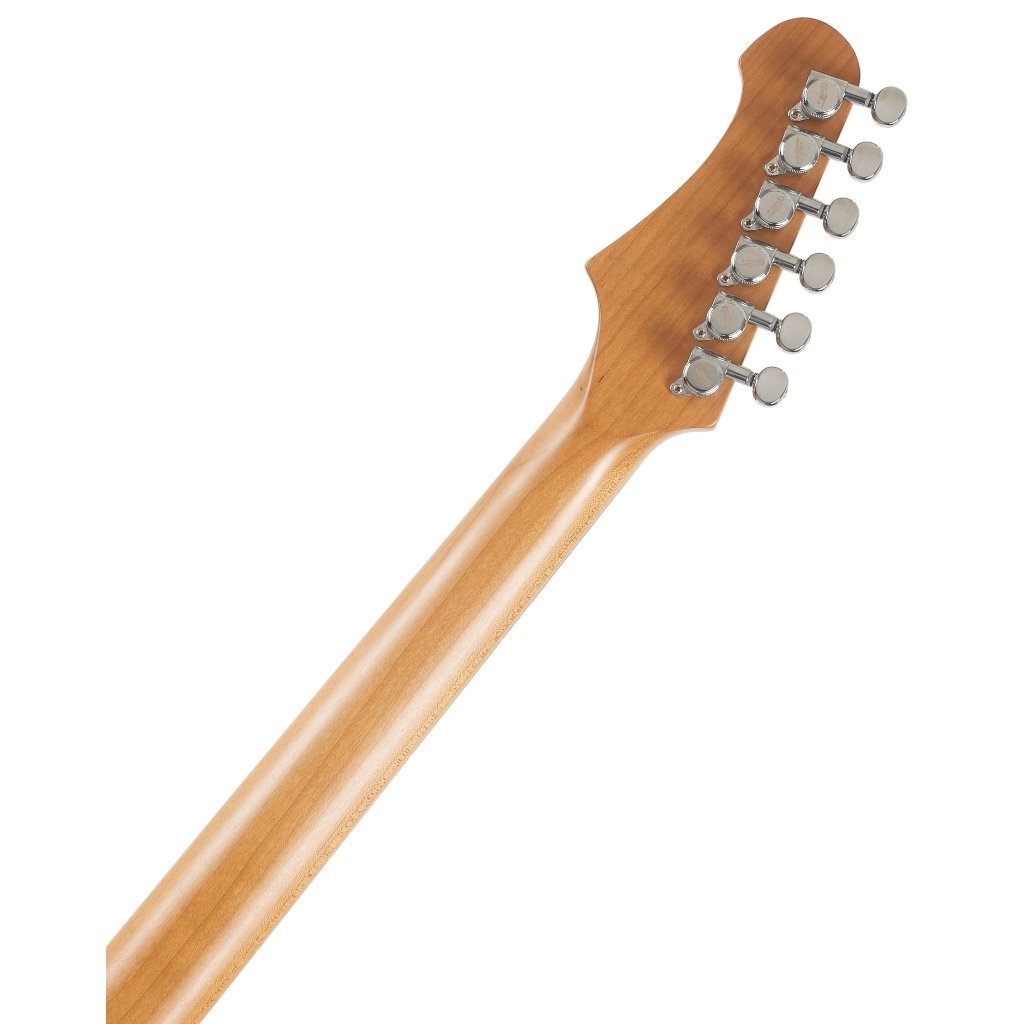Elektrická gitara JET JS-600 TRS je modernejší model ST/Super ST. Mahagónové telo nástroja zdobí efektná dyha z dyhovaného javora. K priskrutkovanému krku z praženého kanadského javora je prilepený zmiešaný ebenový hmatník s dvadsiatimi dvoma pražcami.