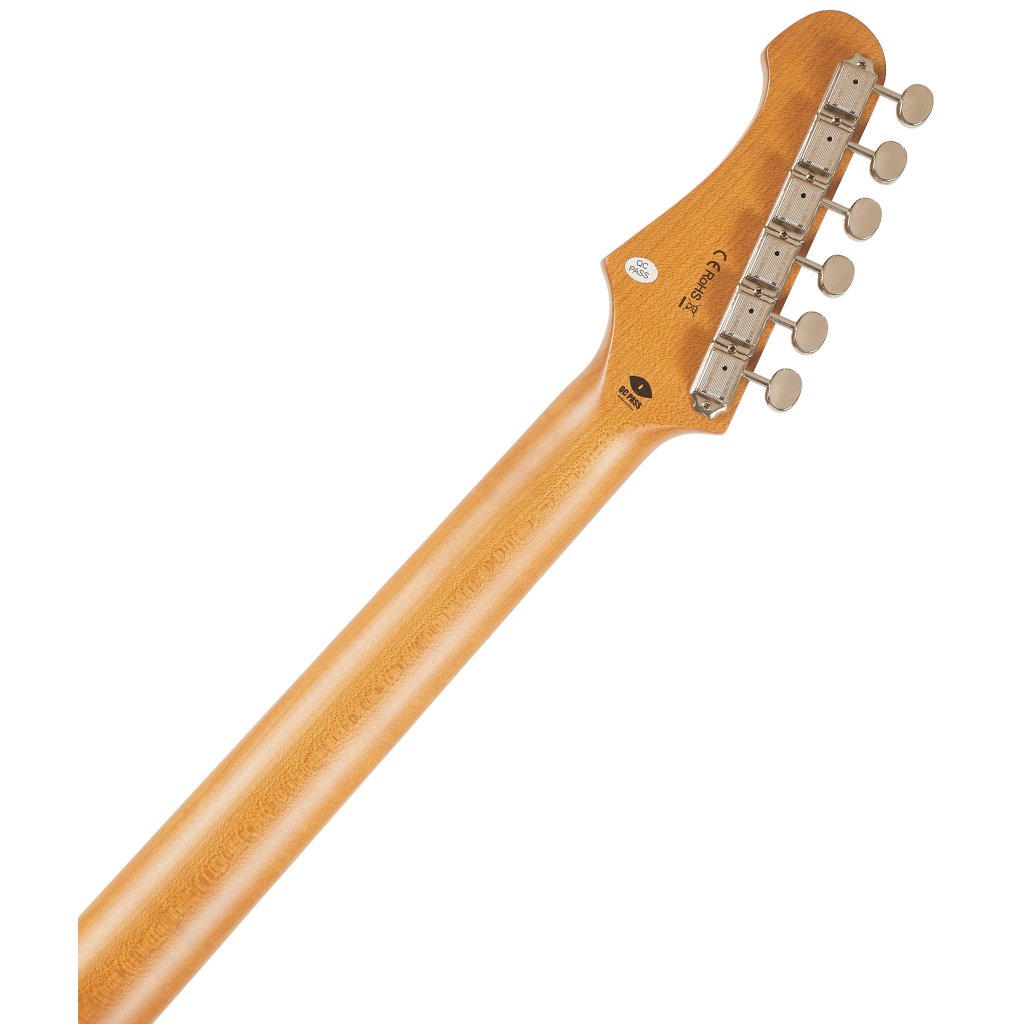 O zvuk gitary sa starajú dva na zákazku vinuté single-coil snímače s magnetmi Alnico. Charakter zvuku upravíte pomocou ovládačov hlasitosti a tónovej clony a trojpolohového prepínača snímačov. Struny sú osadené ladiacimi mechanikami Wilkinson WJ-55 a priechodnými snímačmi Wilkinson WTB. Štýlový vzhľad gitary podčiarkuje čierny pickguard.