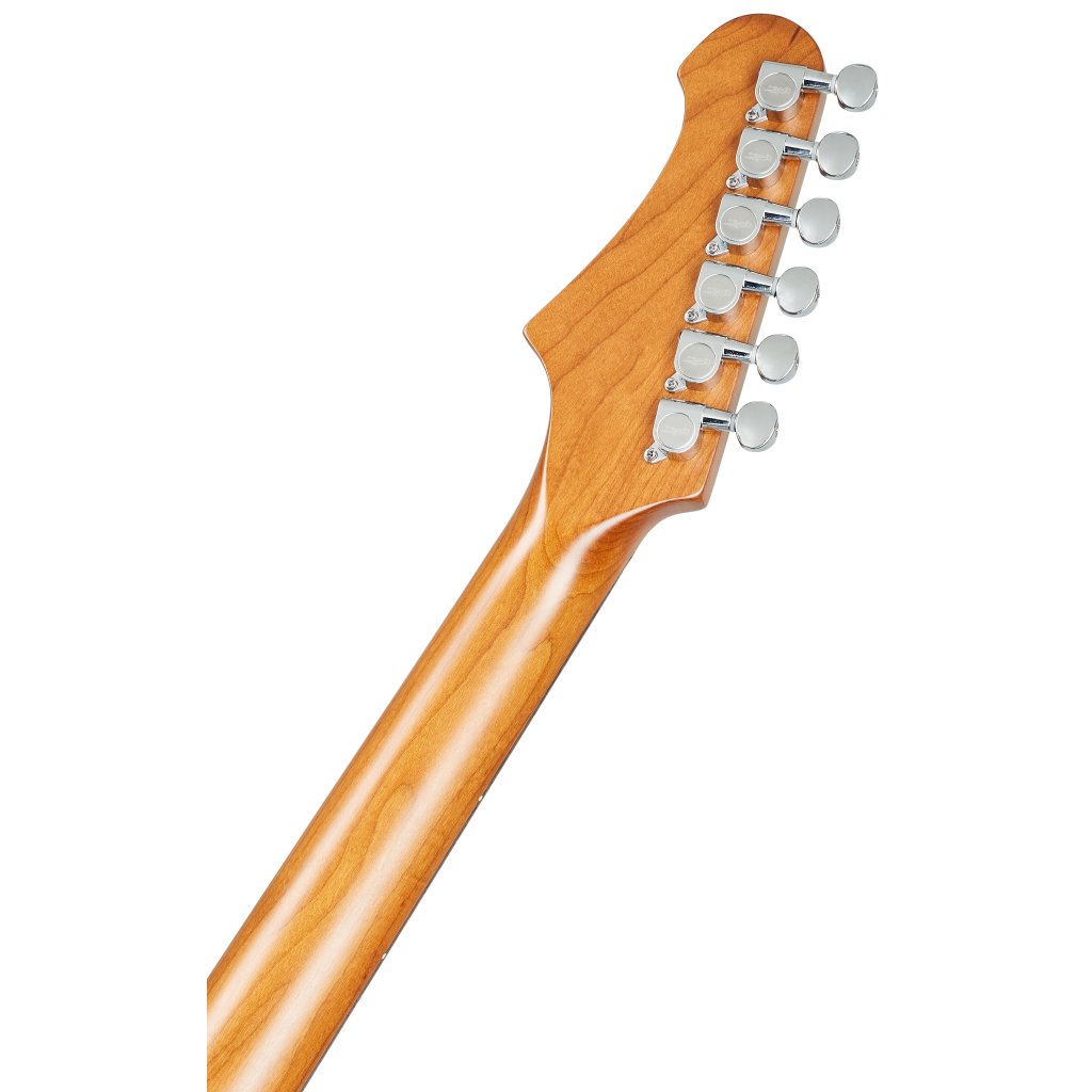 JET JT 300 BL R je elektrická gitara, ktorá ponúka dizajn, remeselné spracovanie a tradičné vlastnosti modelov T za dostupnú cenu. Limetkové telo nástroja je pokryté lesklým lakom. Palisandrový hmatník s dvadsiatimi dvoma pražcami je prilepený na skrutkovaný krk z praženého kanadského javora.