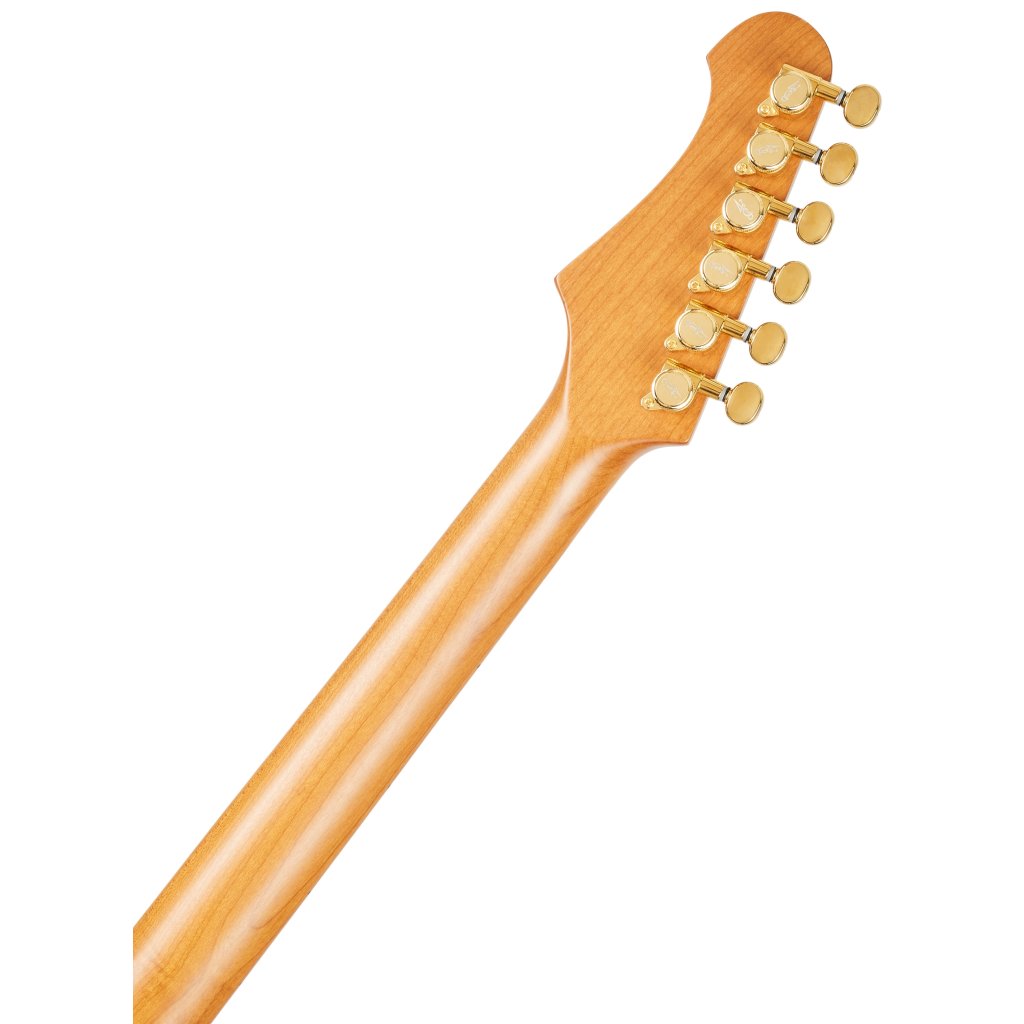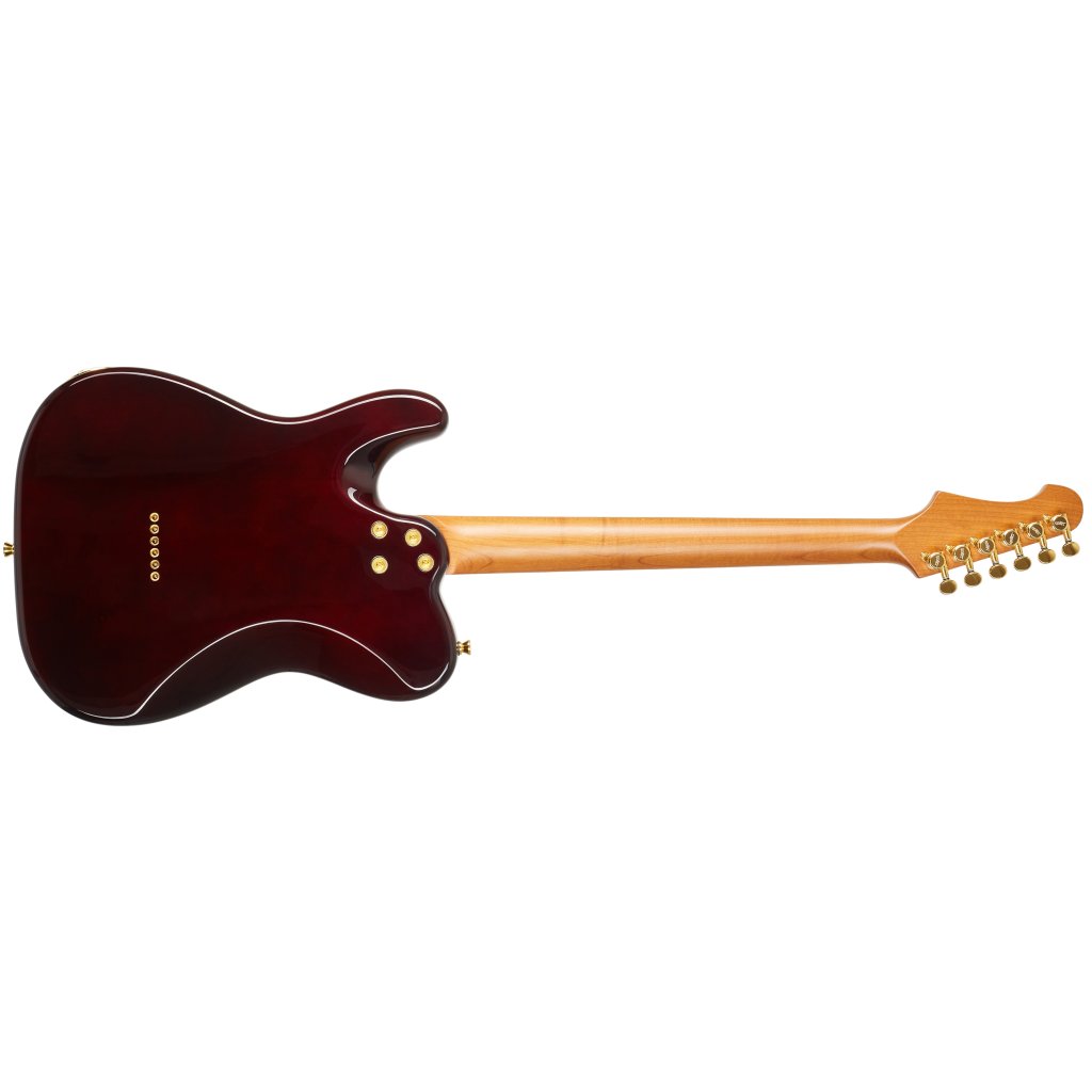 Mahagónové telo gitary zdobí efektná fládrovaná javorová dýha a povrchová úprava Brown Sunburst. Skrutkovaný krk a hmatník z kanadského javora boli pred montážou tepelne upravené, vďaka čomu je drevo stabilnejšie a zároveň získava vzhľad/atmosféru krku/hmatníka, na ktorý sa hrá už roky.