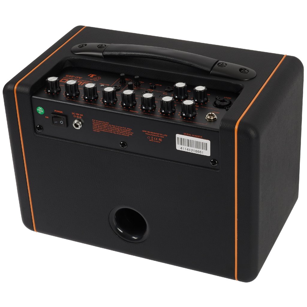 Kombo AC-20S ponúka výkon 20 W a je vybavené dvoma samostatnými kanálmi pre gitaru a mikrofón. Medzi ovládacími prvkami gitarového kanála nájdete okrem hlasitosti a trojpásmového ekvalizéra (basy, stredy, výšky) aj potenciometre pre tri DSP efekty (Chorus, Delay a Reverb). Mikrofónový kanál má okrem hlasitosti aj vlastný ovládač efektu Reverb, takže môžete ovplyvňovať úroveň priestorového efektu na každom kanáli zvlášť. Vstavaná nabíjateľná batéria vydrží až šesť hodín nepretržitej prevádzky, čo stačí na popoludňajšie jamovanie v parku.