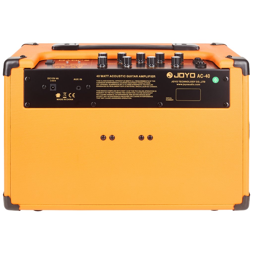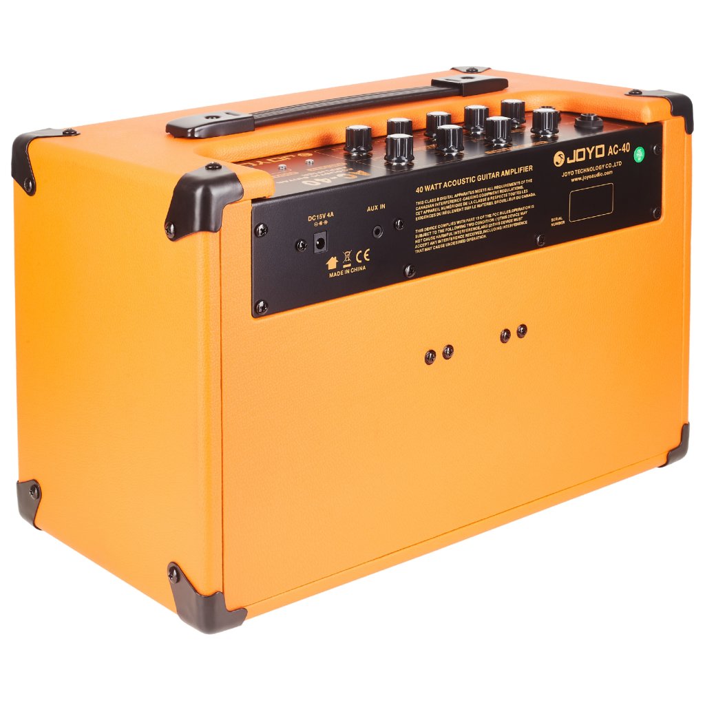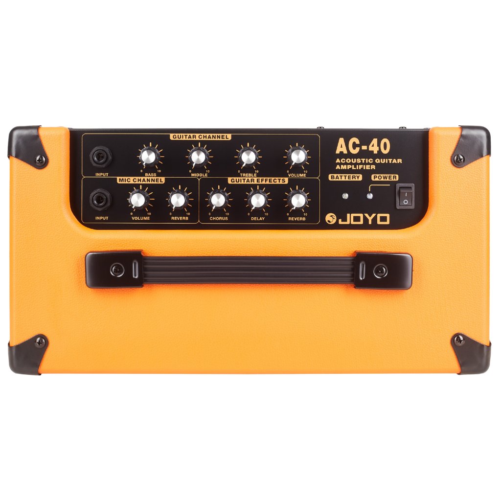 Limitovaná edícia série AC-40 Orange ponúka dvojkanálové akustické kombo Joyo s oranžovým tolexovým poťahom, prednou priesvitnou látkou pšeničnej farby a hniezdom (36 mm) na jednoduchú montáž komba na stojan reproduktora. So štyridsiatimi wattmi výkonu a vstavanou nabíjateľnou batériou s trojhodinovou výdržou na jedno nabitie je AC-40 Orange mimoriadne dobrou voľbou pre všetkých buskerov, ale určite si nájde cestu aj do menších klubov a divadiel.