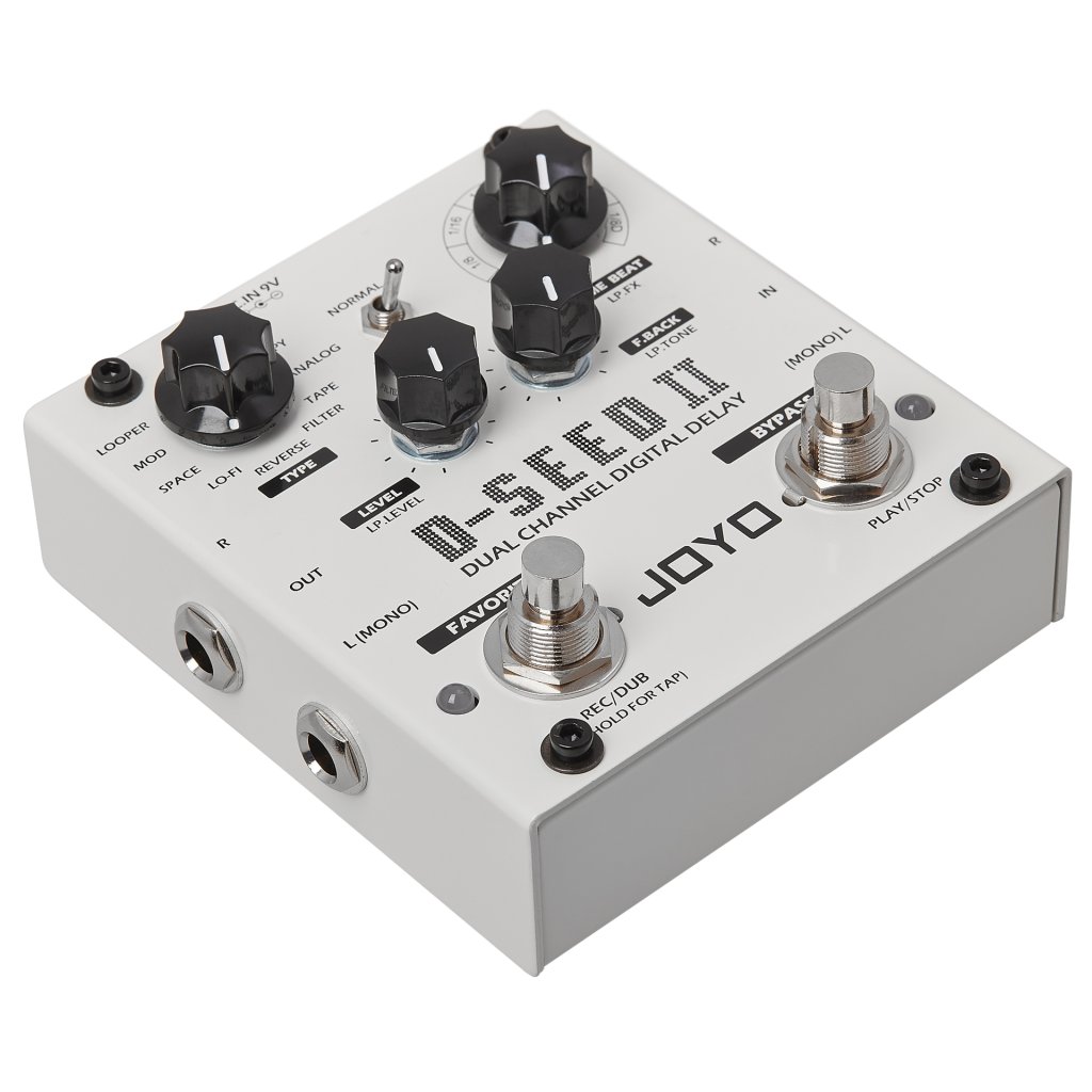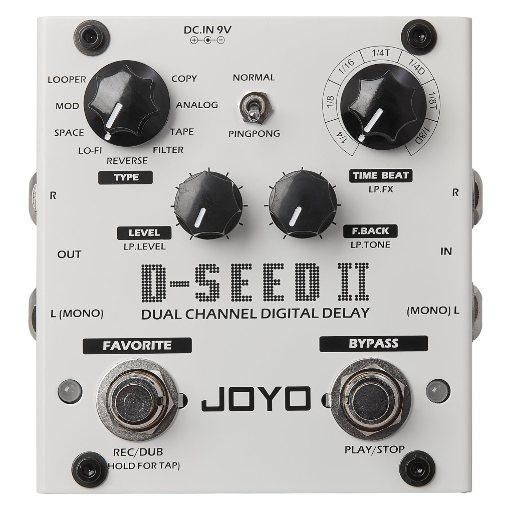 Joyo D-Seed II je dvojkanálový digitálny stereo delay a looper v kompaktnom tele pedálového efektu. Okrem štandardného režimu ponúka osem typov delay efektov (Space, Lo-Fi, Filter, Tape, Digital, Analog, Mod, Reverse), looper s 3,5 minútovým nahrávacím časom, funkciu Tap Tempo a prepínateľný Ping Pong mod (pre pôsobivé efekty v stereu). Na úpravu nastavení vybraných efektov slúžia tri ovládacie prvky, ktoré určujú množstvo delay efektu vo výstupnom signáli, rýchlosť priebehu a počet opakovaní efektu.