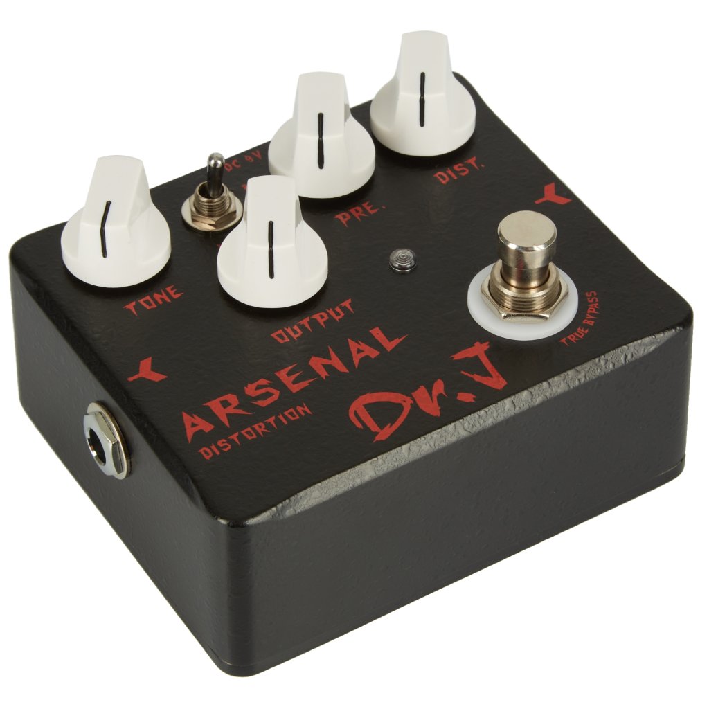 DR. J Arsenal Distortion je gitarový skresľovací efekt Joyo, ktorý ponúka širokú škálu skreslených zvukov od britského rockového plexi crunch až po hi-gain moderného metalu. Pomocou ovládacích prvkov pedálu je možné nastaviť výstupnú hlasitosť (Output) a charakter zvuku (Distortion, Tone, Presence a prepínač stredových frekvencií). Za investované peniaze nečakajte vernú simuláciu lampových aparátov, skôr dobrú skresľovaciu krabičku do skúšobne alebo na domáce hranie. Pedál pracuje v režime true bypass, takže vo vypnutom stave nijako neovplyvní priechodný signál.