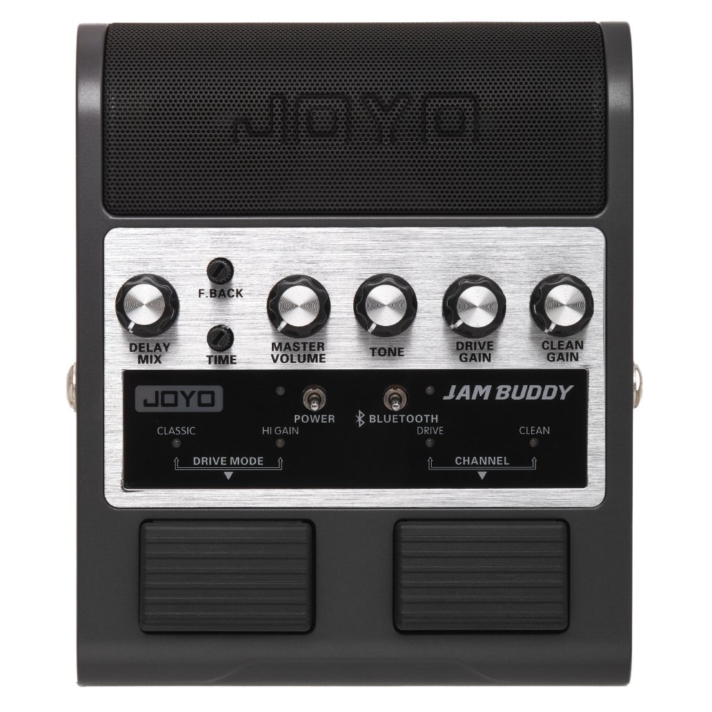 Jam Buddy od spoločnosti Joyo je ultrakompaktné gitarové kombo vo formáte pedalboardu, ktoré sa skvele hodí na domáce cvičenie, tiché hranie so slúchadlami alebo jamovanie s akýmkoľvek hudobným sprievodom. Kombo je vybavené dvoma 2" 4W reproduktormi pre vernú reprodukciu zvuku a disponuje dvoma kanálmi - čistým Clean a skresleným Drive. Zatiaľ čo režim Clean poskytuje krištáľovo čistý zvuk, kanál Drive ponúka aj možnosť voľby medzi jemnejším bluesovým skreslením (Classic) a agresívnym zvukom s vysokým gainom (Hi Gain). Na svoje si prídu všetci bluesmani, rockeri aj metalisti.