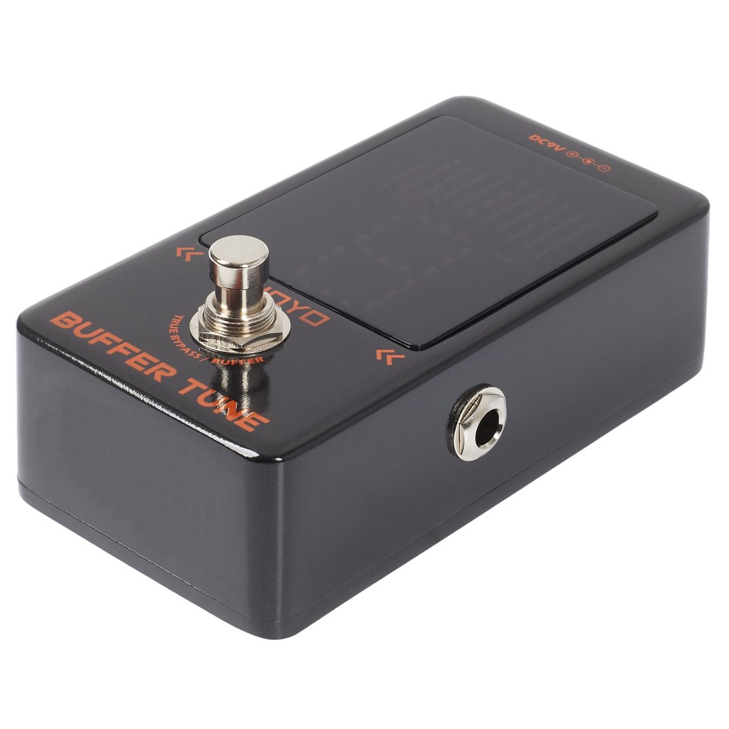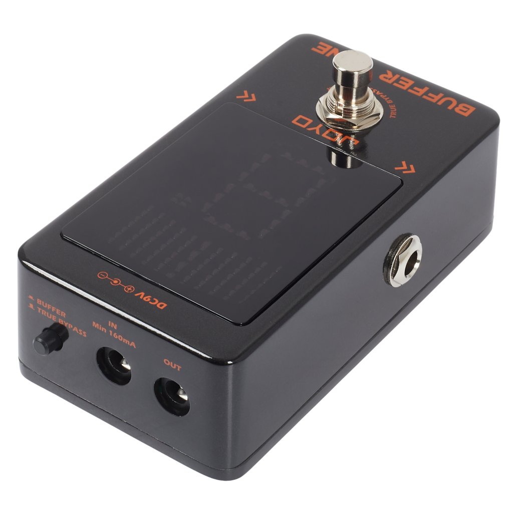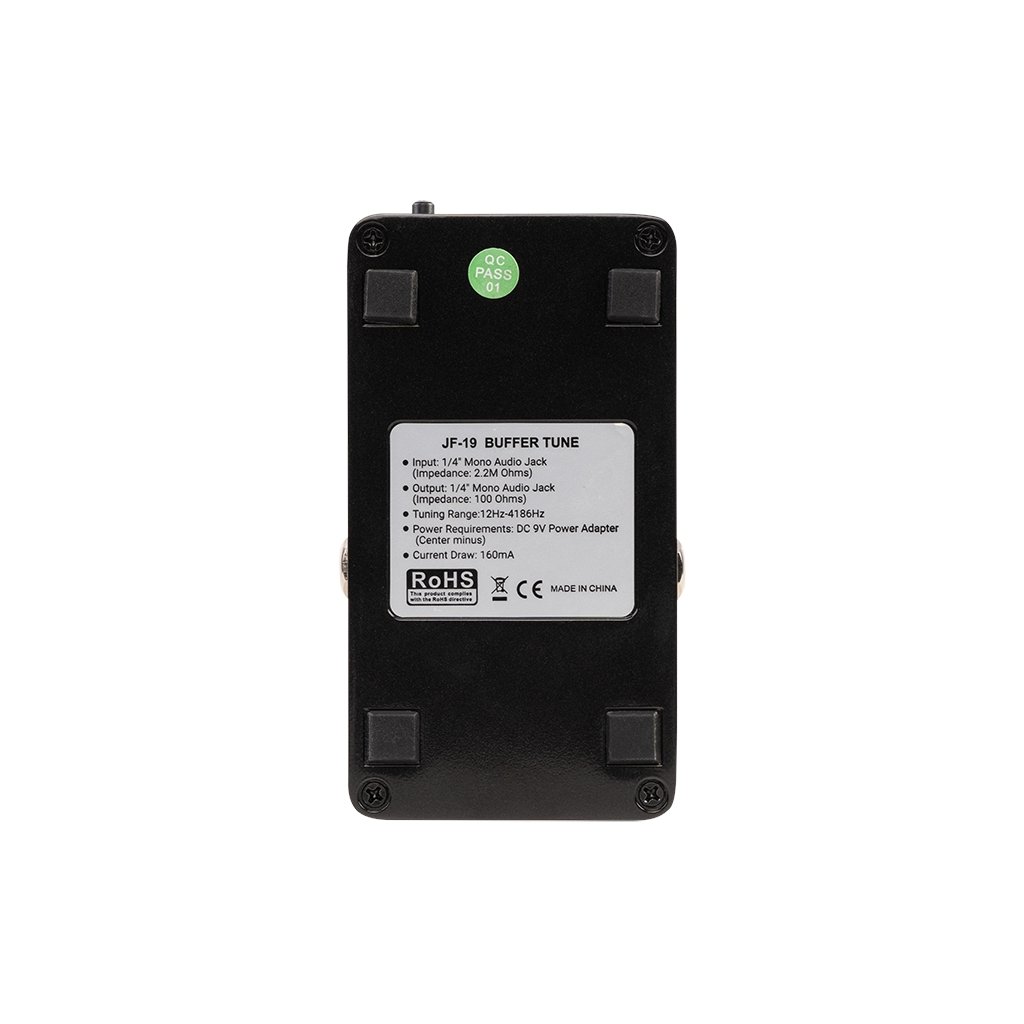 Pedálová ladička Joyo JF-19 s integrovanou vyrovnávacou pamäťou vám umožní nielen presné a rýchle ladenie, ale oceníte ju aj vtedy, keď signál vašej gitary prechádza dlhým efektovým reťazcom plným káblov a pedálov. Vtedy potrebujete stratený signál nakopnúť a obnoviť pôvodný lesk a integritu tónu. To je úloha vyrovnávacej pamäte. Samotná ladička umožňuje naladiť bežnú gitaru, sedemstrunovú gitaru a basgitaru. Poskytuje vysokú presnosť ladenia +/-1 cent a prehľadný LED displej, ktorý bude krásne čitateľný aj na zatemnenej súprave. Ladička ponúka voliteľné režimy true bypass a true buffer. Na napájanie sa používa 9V adaptér.