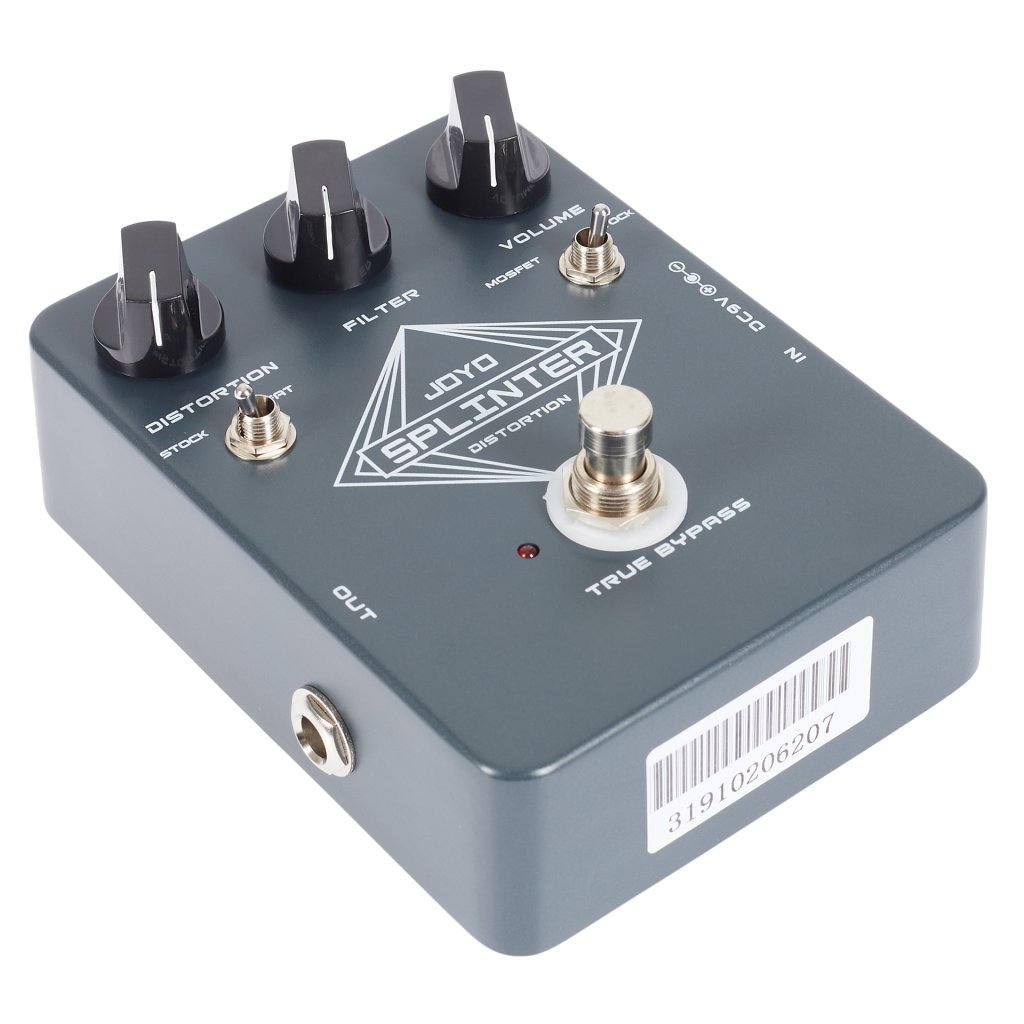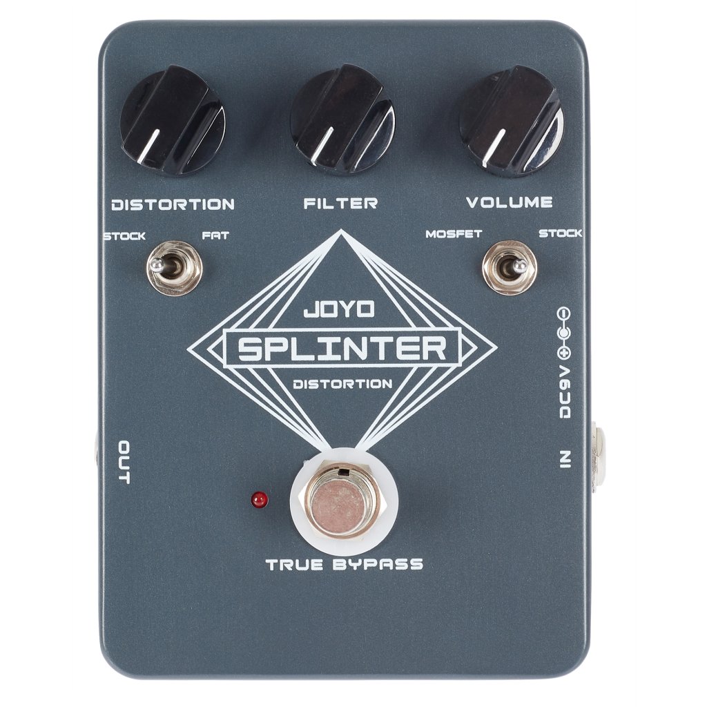 JF-21 Splinter ponúka dve klasické "dirt" krabičky v jednom šasi - distortion a fuzz, a samozrejme možnosť kombinovať oba zvuky pre vynikajúco plný distortion. Tri základné ovládače dopĺňa prepínač Stock/Fat pre prípad, že by sa vám zvuk ešte nezdal dostatočne hutný, a prepínač clippingu (Mosfet/Stock). Všetka elektronika efektu je umiestnená v odolnom kovovom šasi. Krabička pracuje v režime true bypass, na napájanie je potrebný 9V adaptér alebo 9V batéria.
