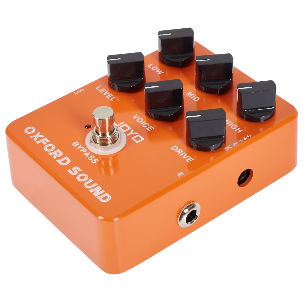 JF-22 Oxford Sound je ďalším zo série krabičiek "Amp in a Box", tentoraz inšpirovaných rockovým zvukom strojov Orange zo 70. rokov. Šesť gombíkov simuluje ovládacie prvky skutočného predzosilňovača, takže nebudete mať problém nastaviť požadovaný zvuk - či už čistý alebo rockový. Všetka elektronika efektu je umiestnená v odolnom kovovom šasi. Krabička pracuje v režime true bypass, na jej napájanie je potrebný 9V adaptér.